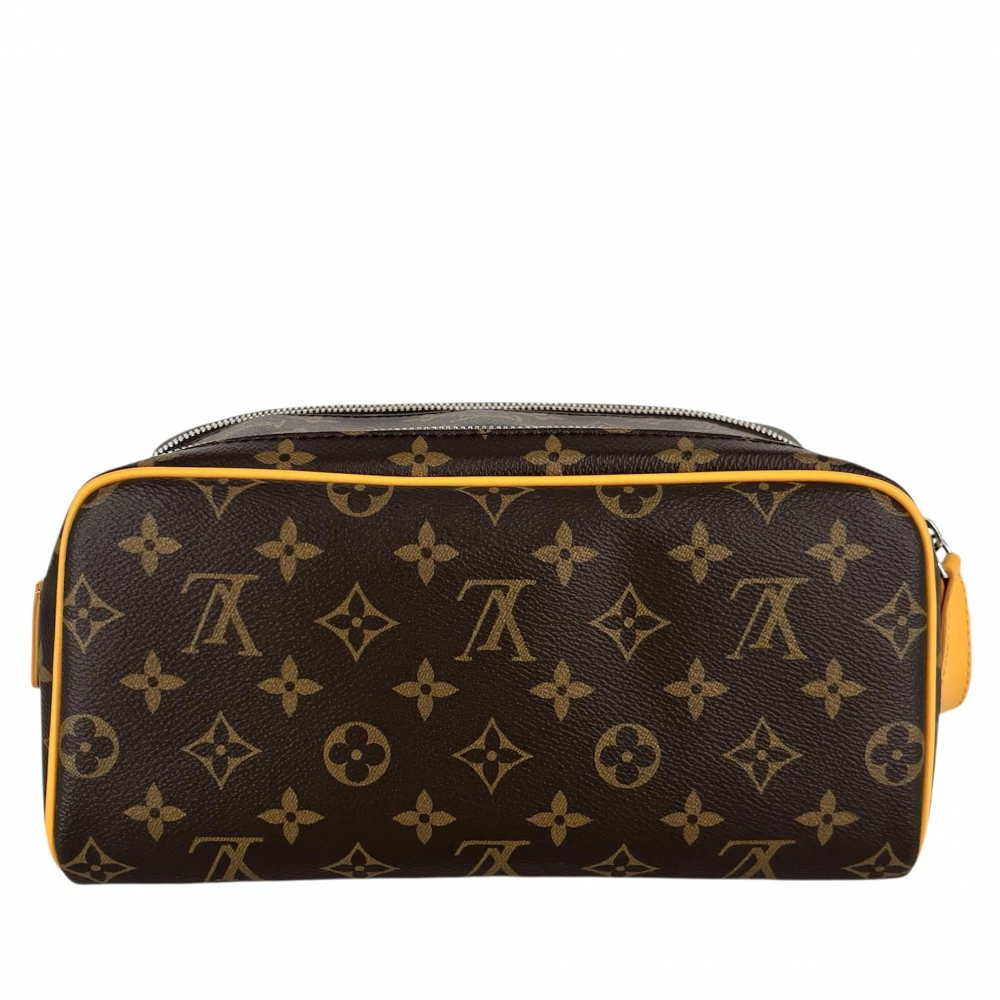 [17% OFF] Pre-owned Louis Vuitton Men's Monogram Macassar Dopp Kit Second Bag/Pouch, Brown, Saffron Yellow, Silver Hardware, Excellent Condition (M12643).