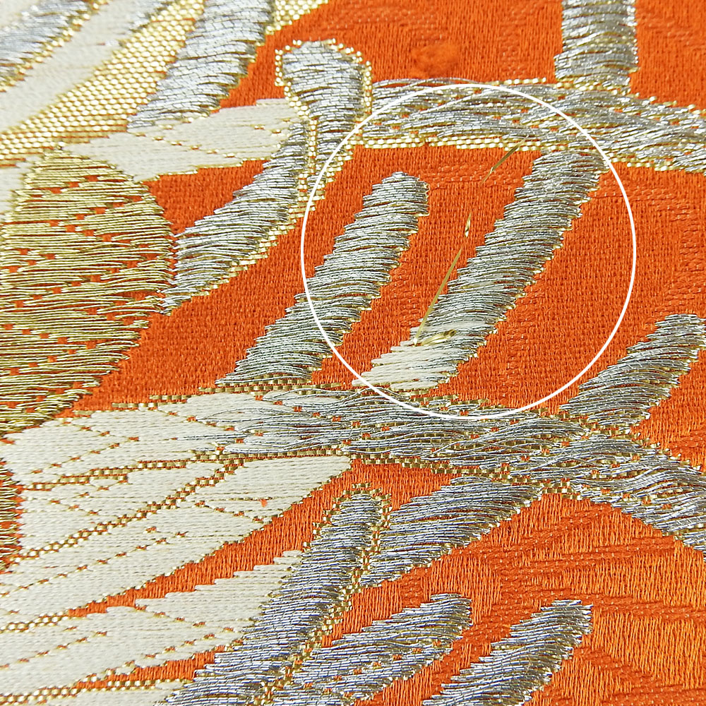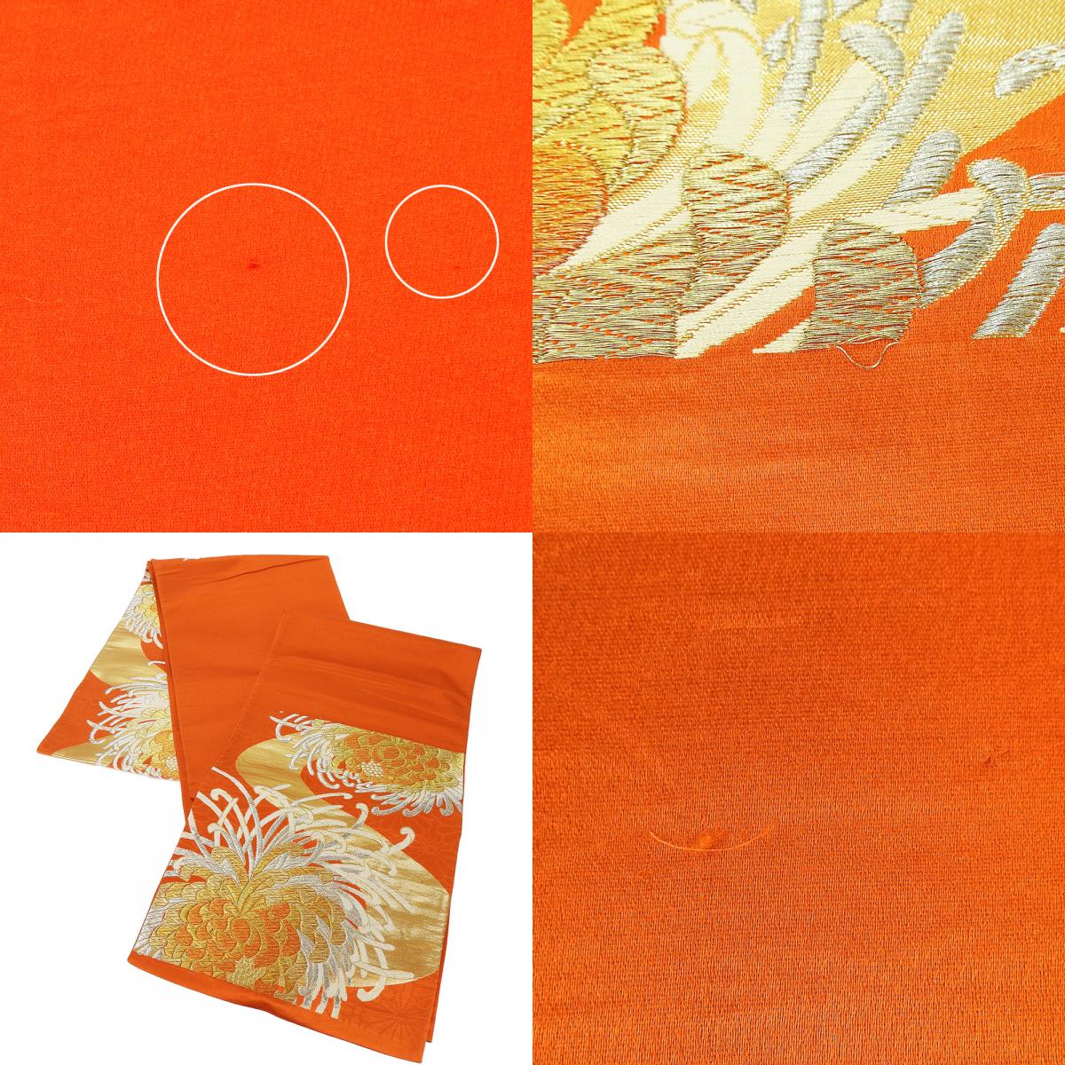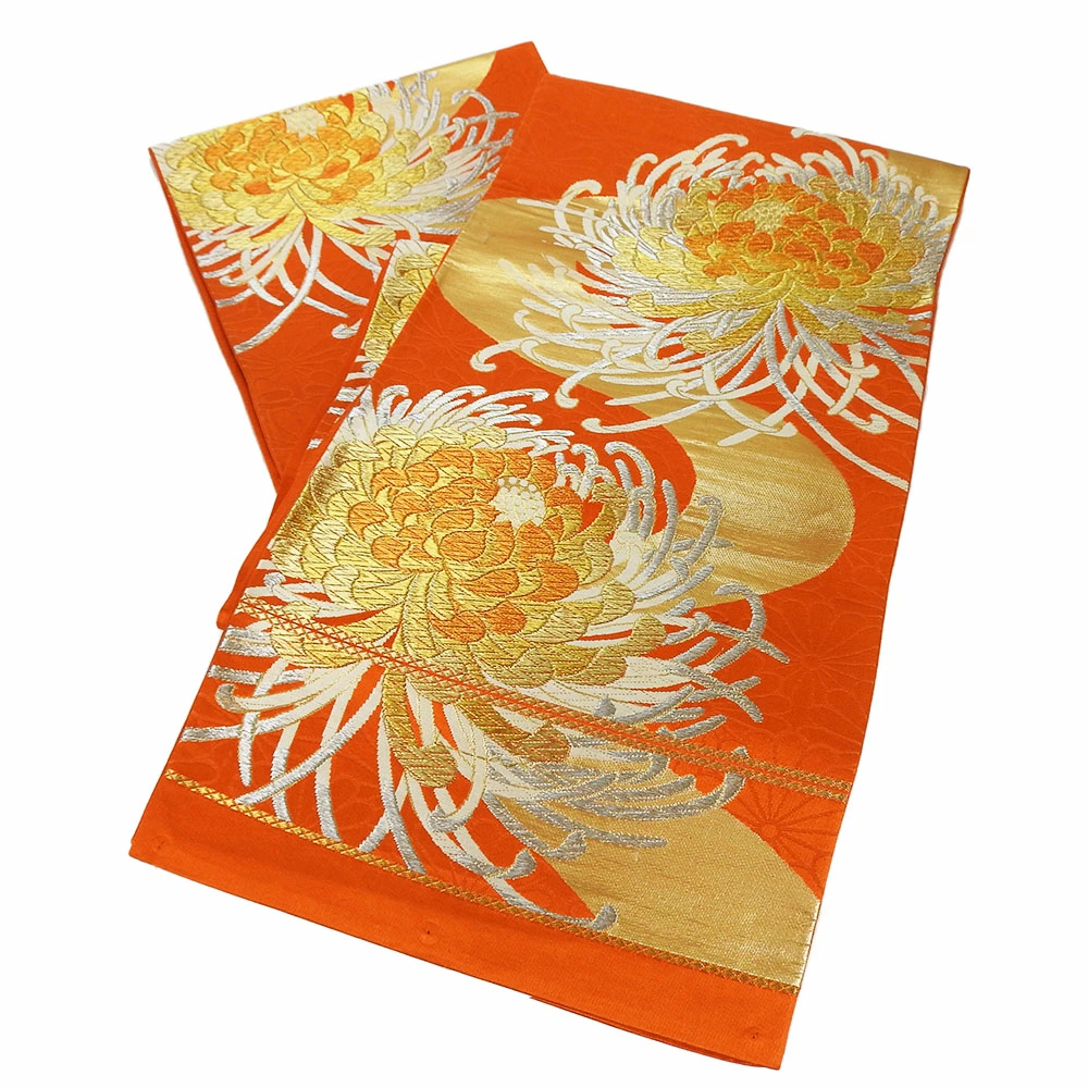 | 品名 | 【中古】袋帯 乱菊 オレンジ地 ゴールド 振袖用 六通柄 成人式 正絹 シルク 呉服 着物 |