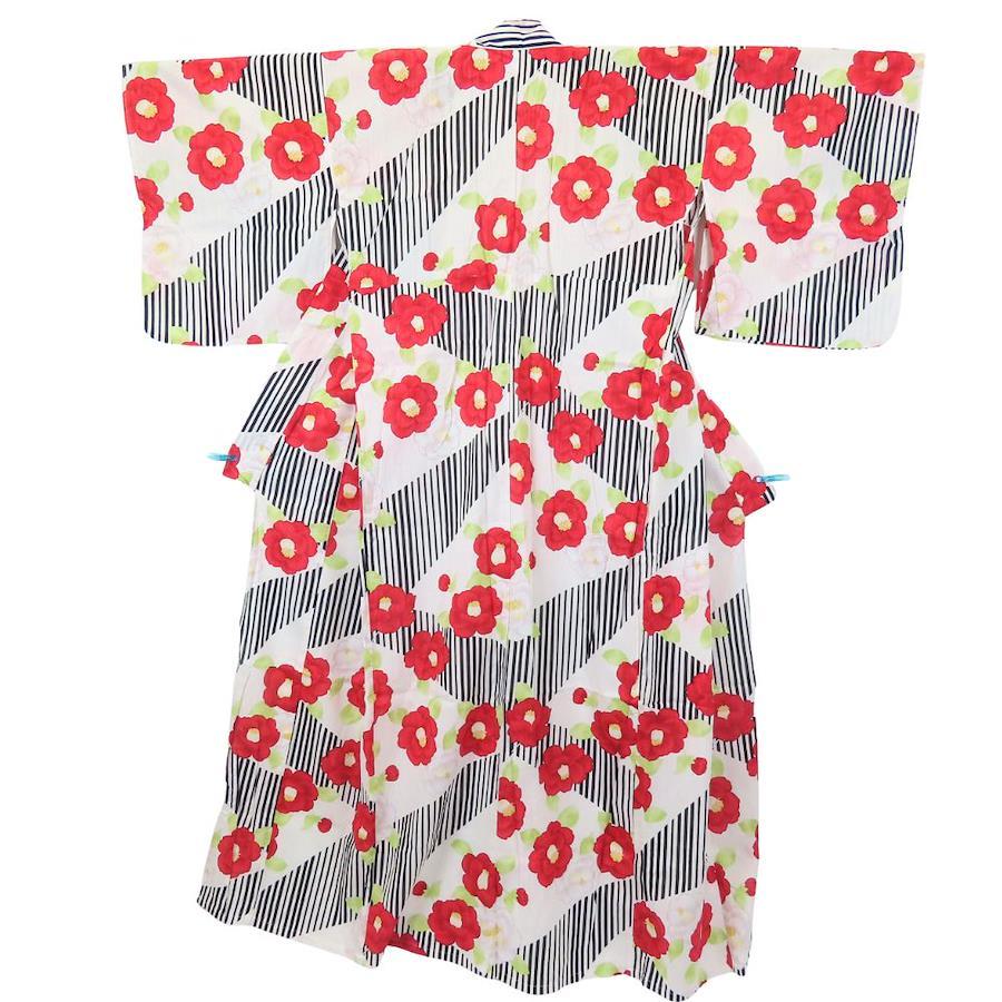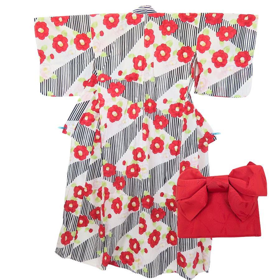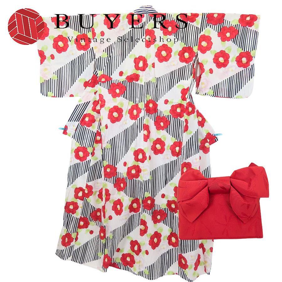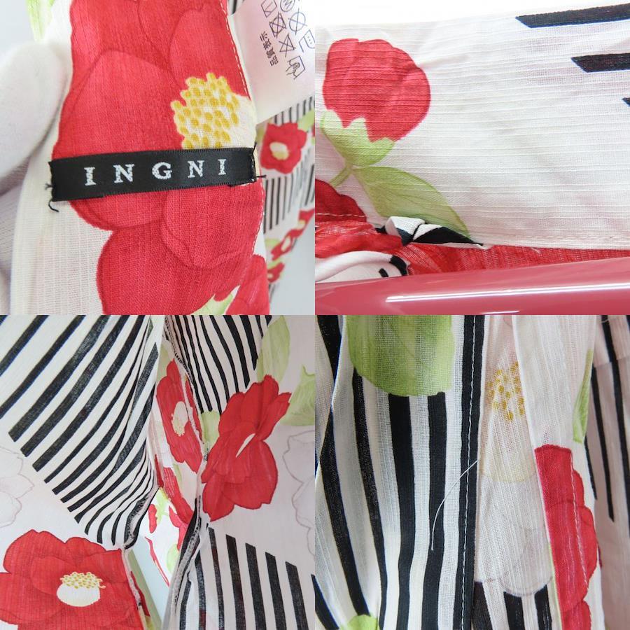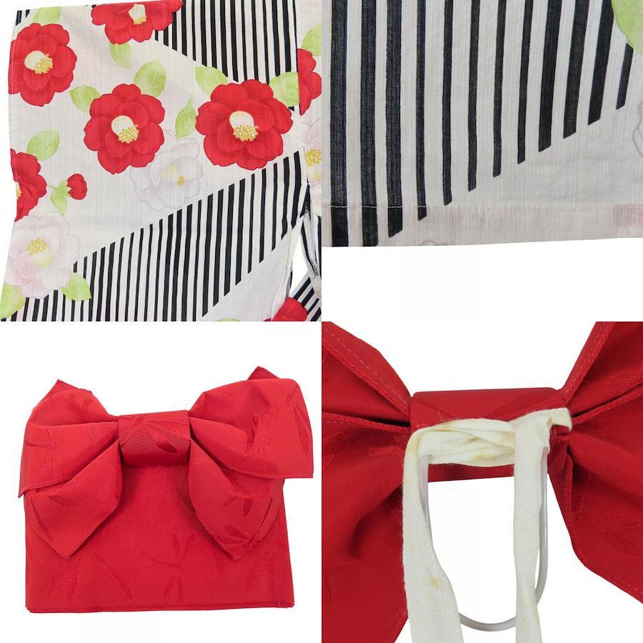 | 品名 | 【中古】 イング 浴衣 セット 作り帯 INGNI 綿 ポリエステル ホワイト レッド 変わり生地 半巾帯 リボン レディース 女性 INGNI |