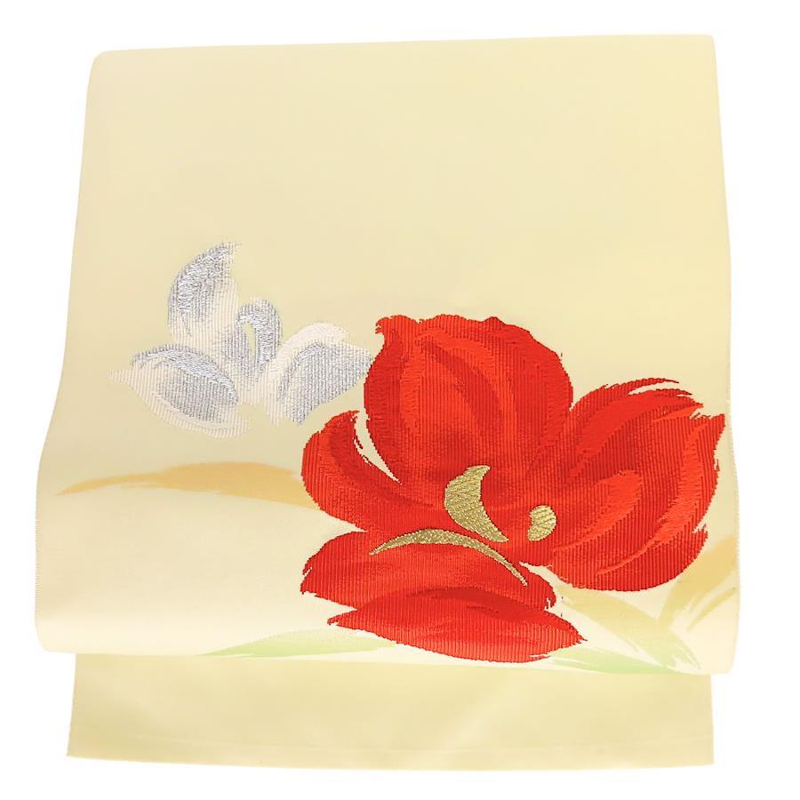 | 品名 | 【中古】 名古屋帯 八寸 お太鼓柄 ポリエステル アイボリー 名古屋仕立て 花 お洒落 レディース 女性 |