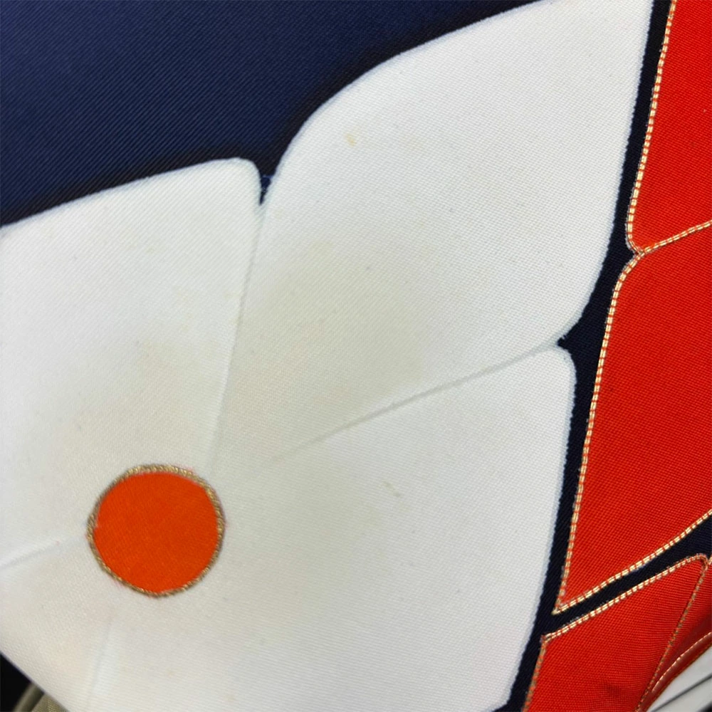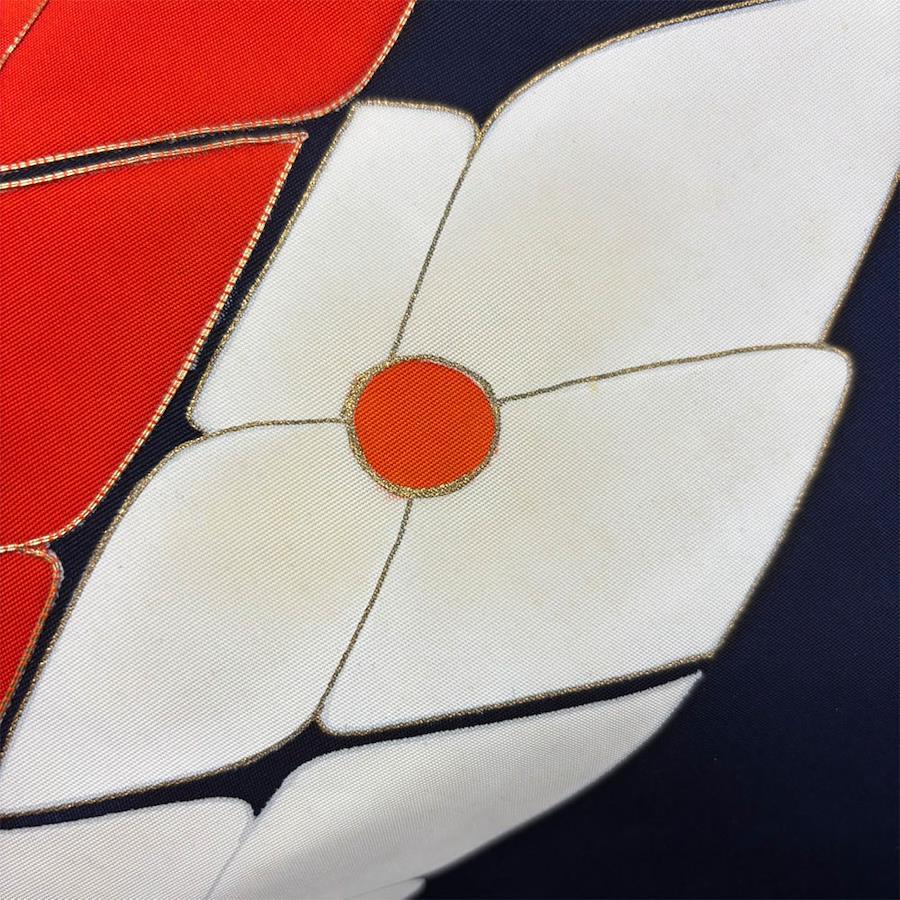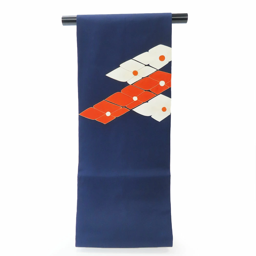| 品名 | 【中古】 名古屋帯 正絹(金銀糸除く) 金糸 紺 赤 白 名古屋仕立て 染め帯 花 レディース 女性 |