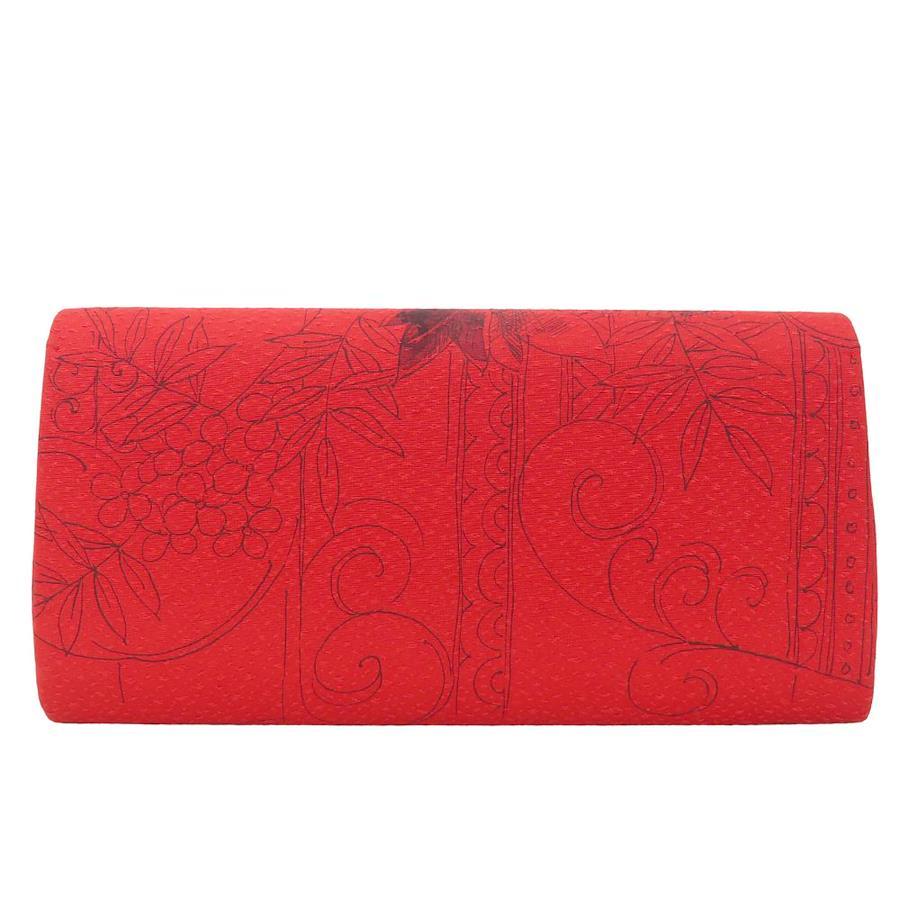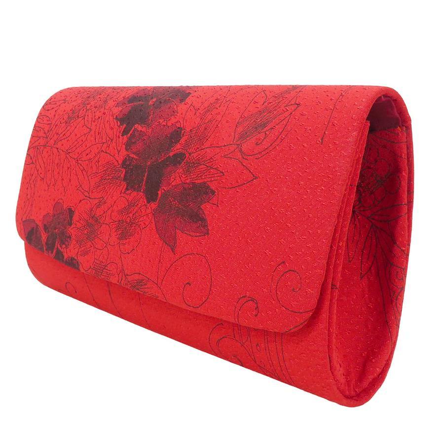 [20% OFF!! Rakuten Super Sale!!] [Pre-owned] Japanese Style Bag, Pure Silk, Red and Black, Clutch, Formal, Floral Print, Kimono, Women's