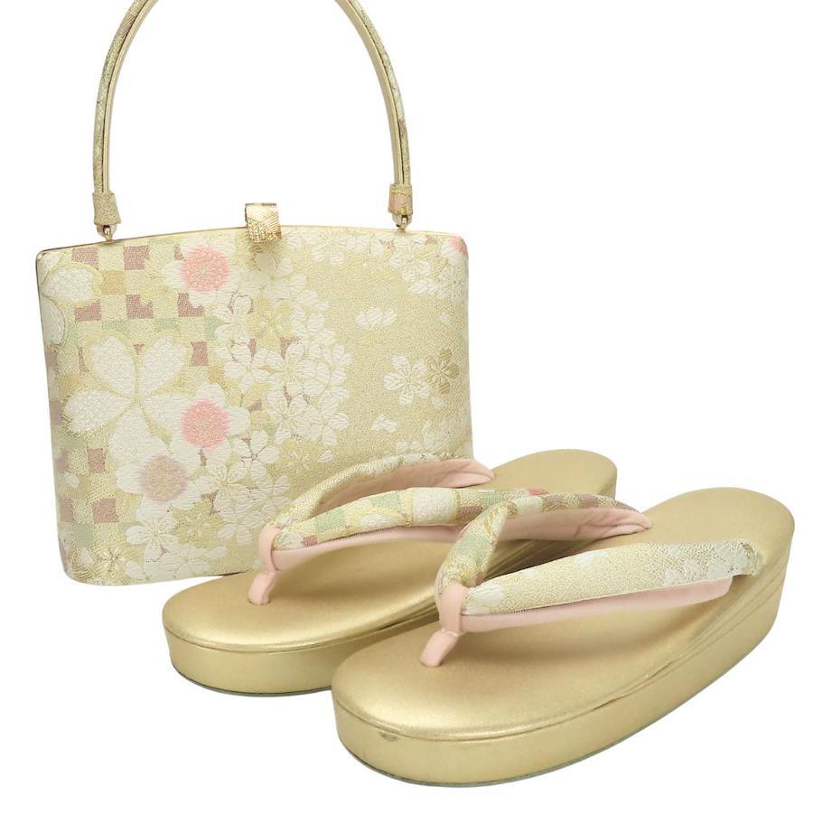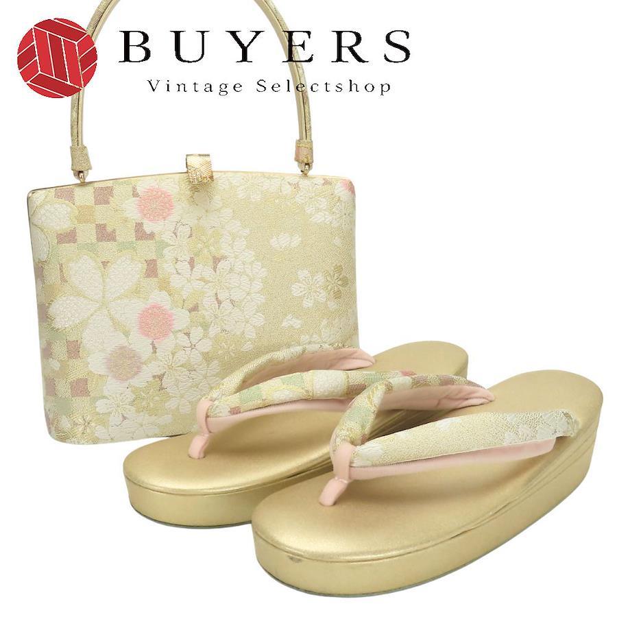 | 品名 | 【中古】 和装バッグ 草履バッグセット 正絹(金銀糸除く) 合成皮革 ゴールド ゴールド金具 振袖 フォーマル 桜 レディース 女性 |