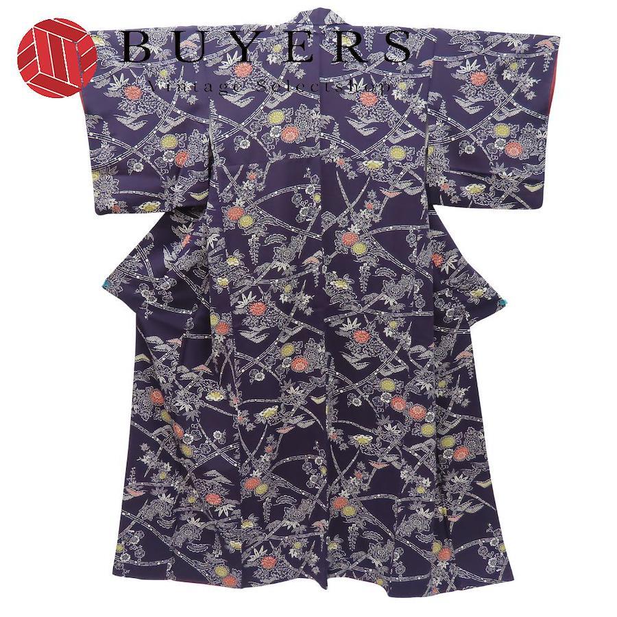 | 品名 | 【中古】 小紋 正絹(金銀糸除く) 紫 竹草花 モダン お洒落 レディース 女性 |