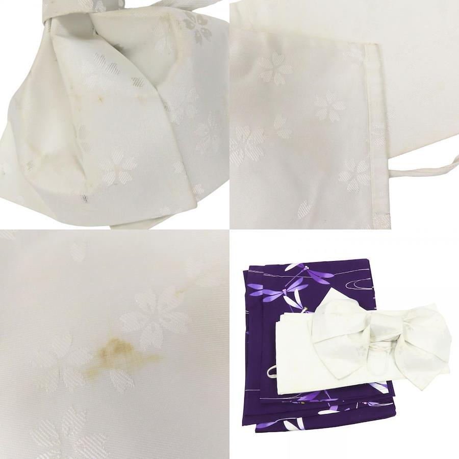 | 品名 | 【中古】 浴衣 セット 作り帯 綿 ポリエステル パープル ホワイト 半巾帯 リボン 可愛い レディース 女性 |