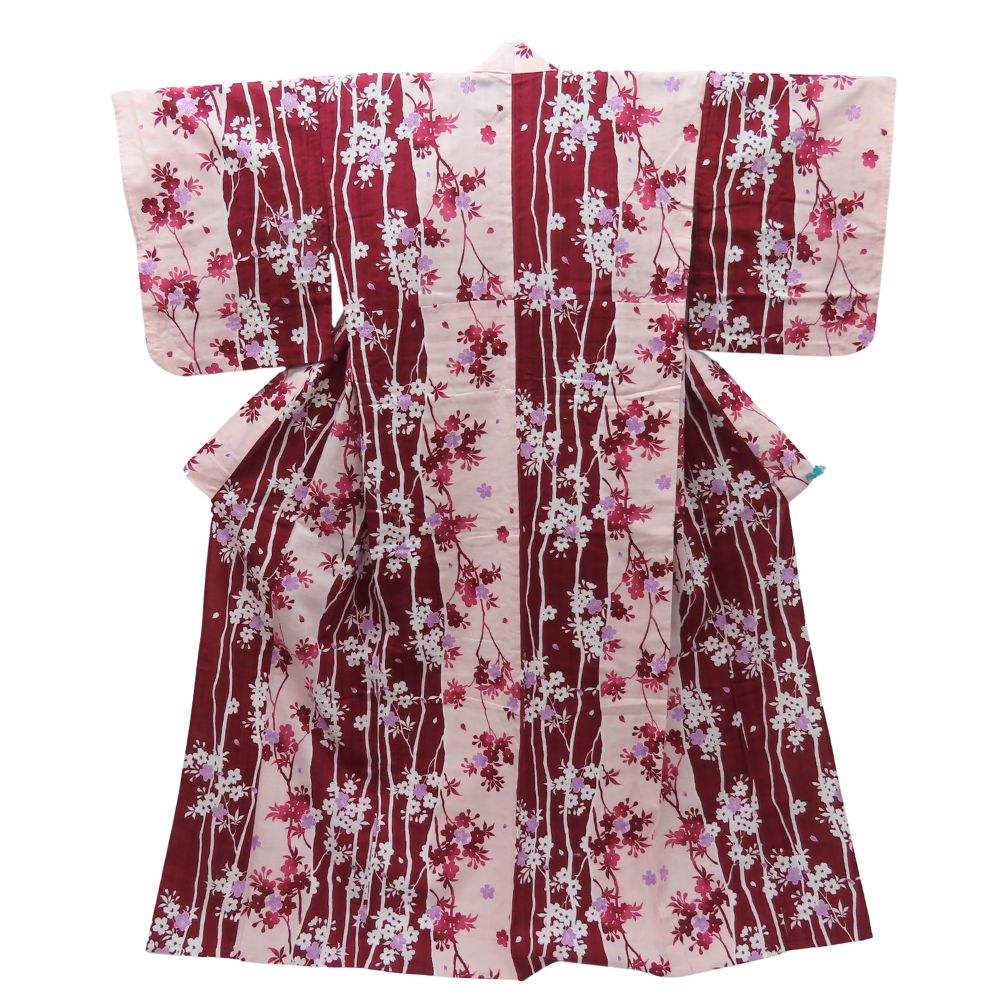 品名【中古】 浴衣 綿 ピンク 花古今 変わり生地 桜 レディース 女性