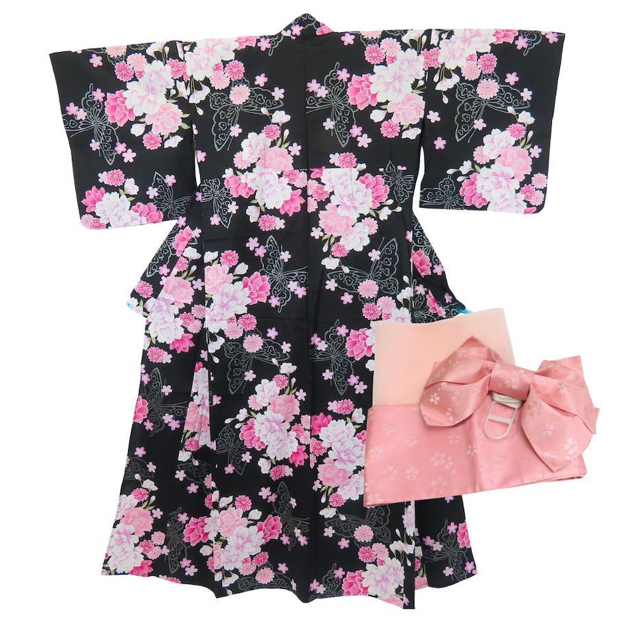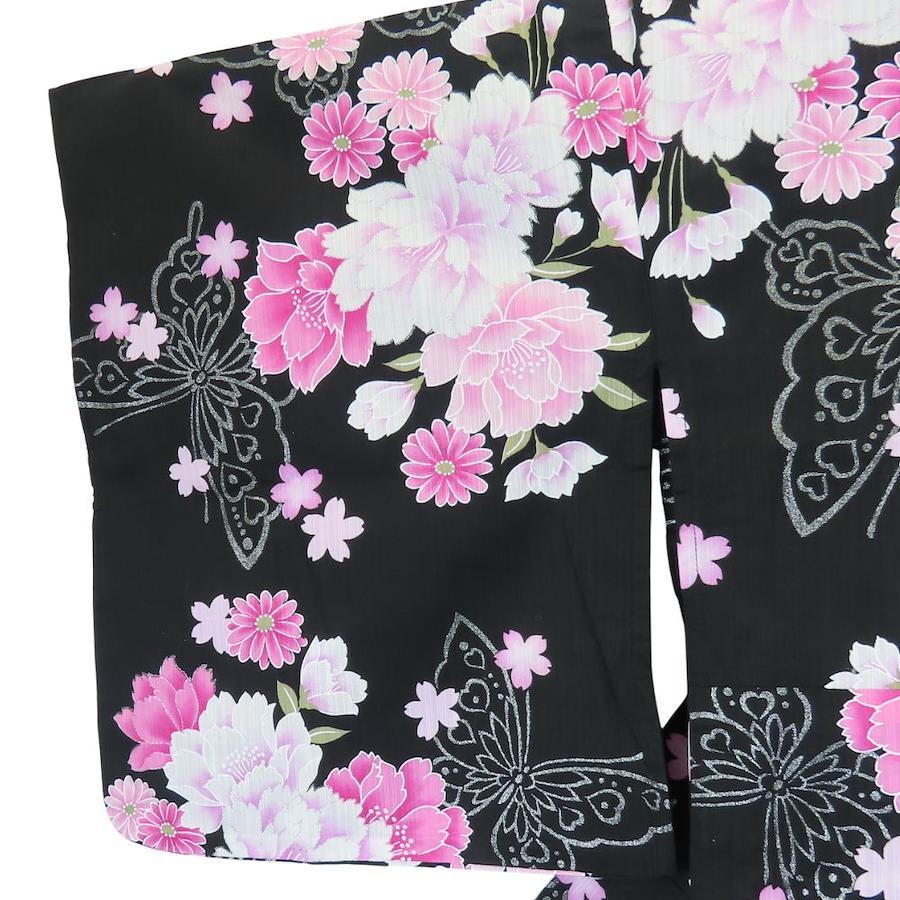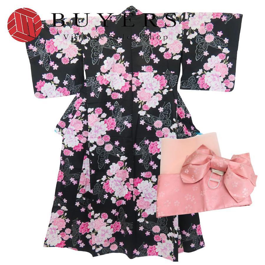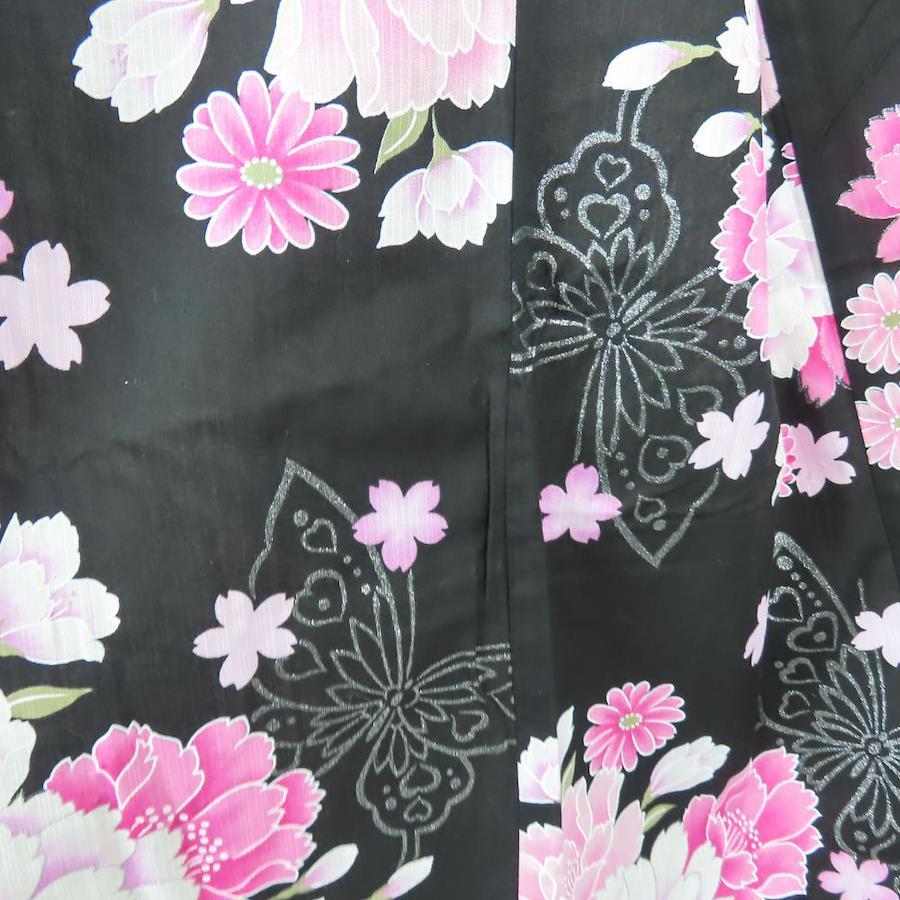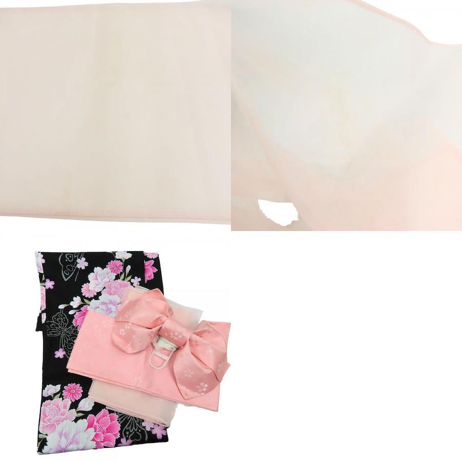 | 品名 | 【中古】 浴衣 3点セット 作り帯 兵児帯 綿 ポリエステル ブラック ピンク 変わり生地 ラメ入り リボン レディース 女性 |