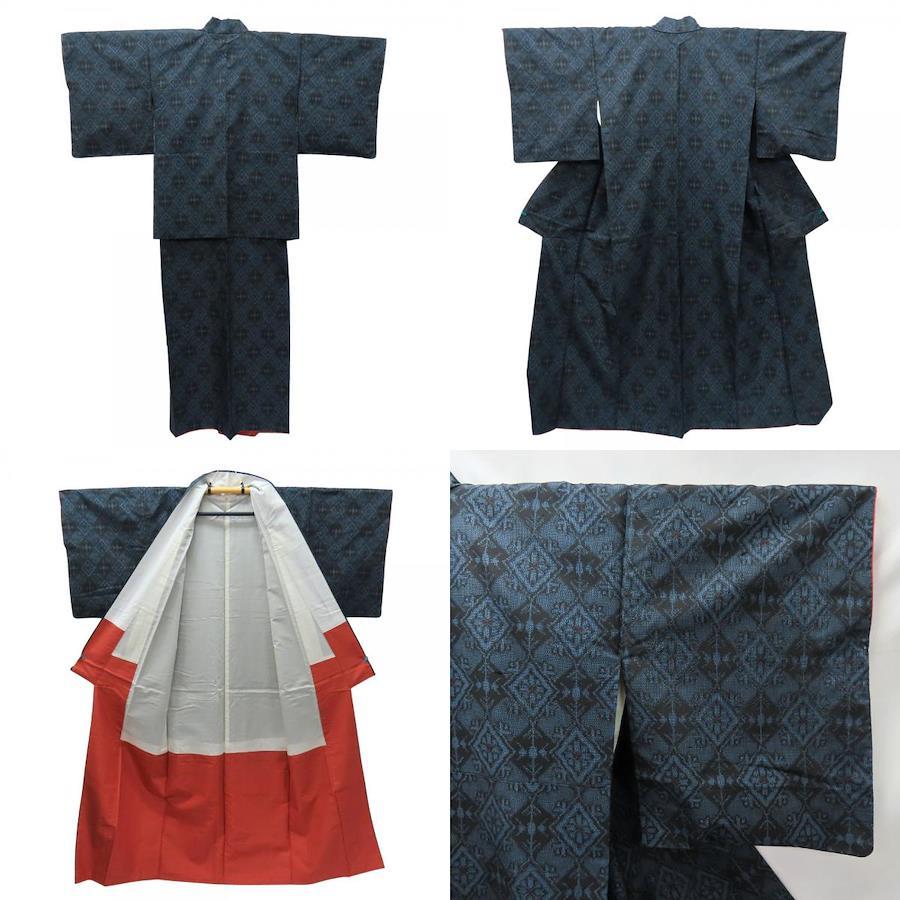 | 品名 | 【中古】 着物セット 村山大島紬 アンサンブル 正絹 ブルー系 ブラック レディース 女性 |