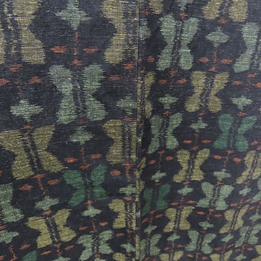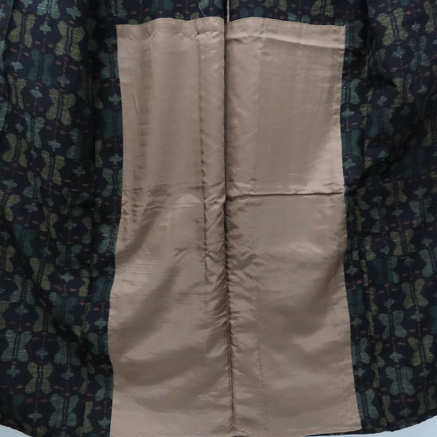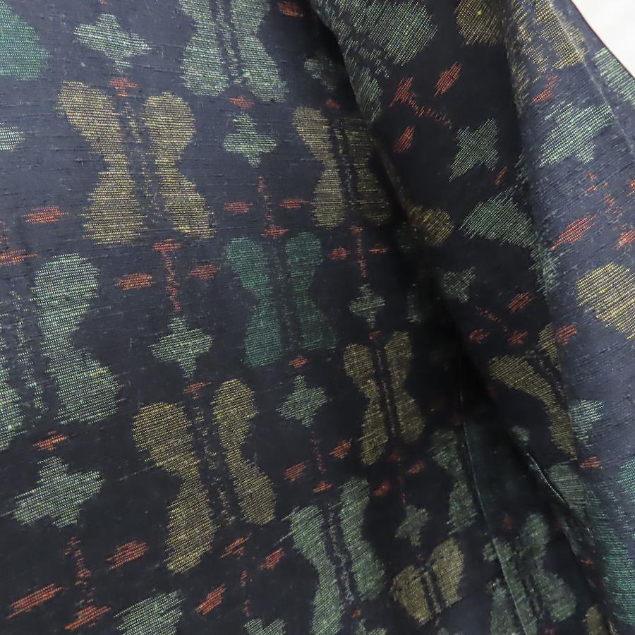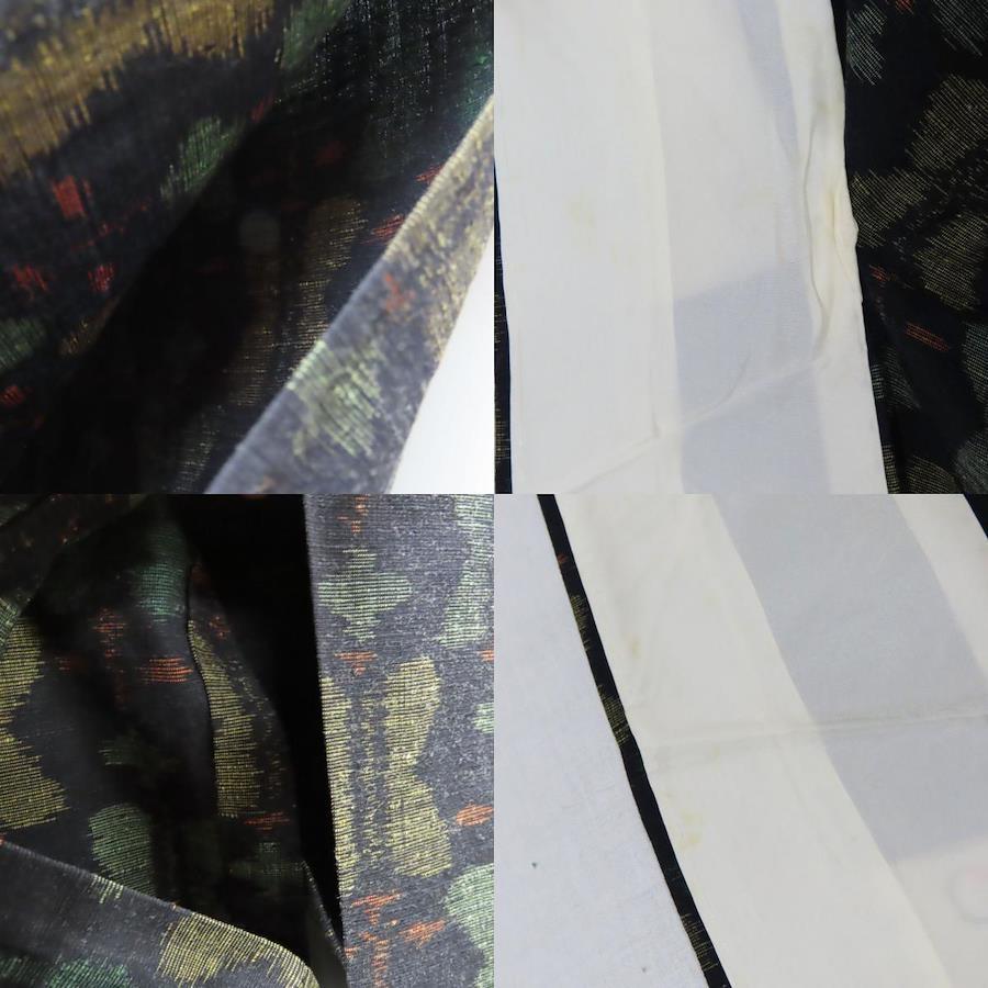 | 品名 | 【中古】 紬 正絹 ブラック グリーン系 マルチカラー 洒落 単衣 総柄 レディース 女性 |