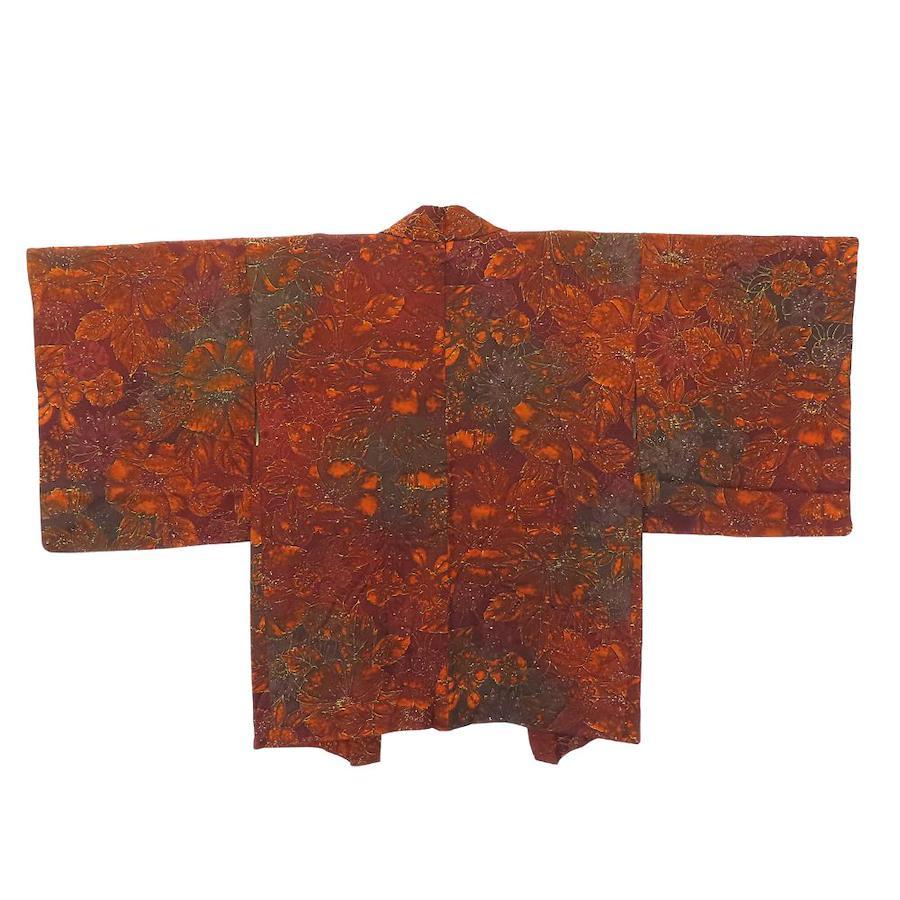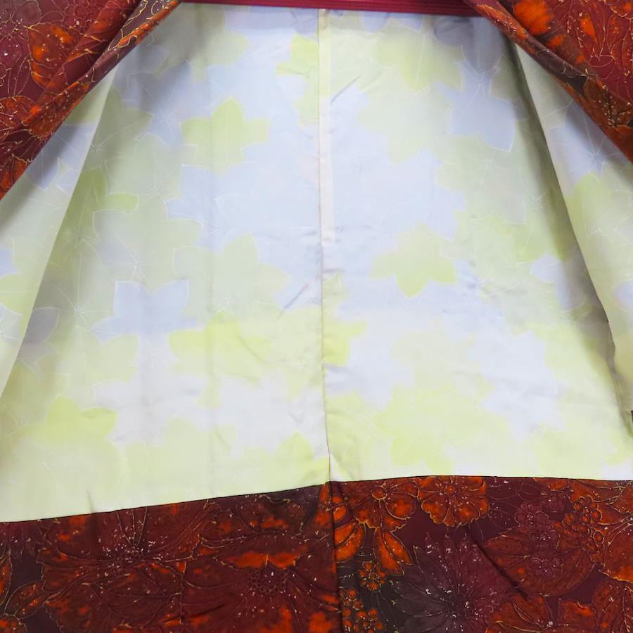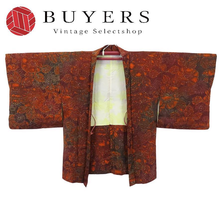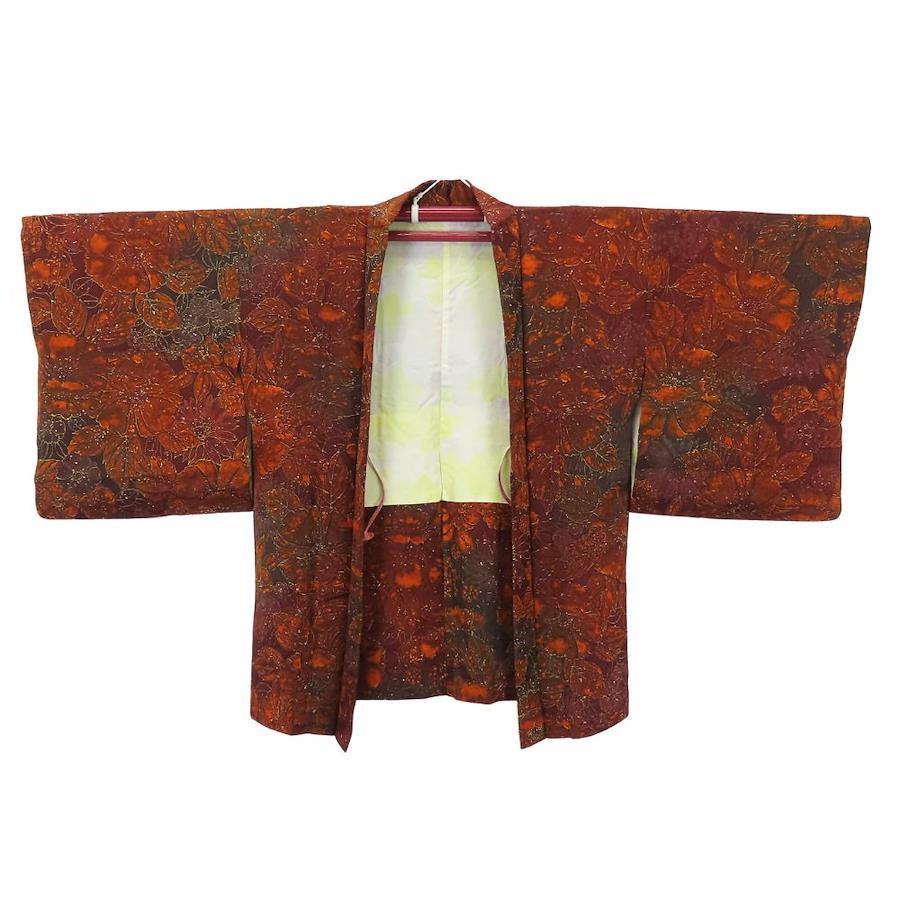 | 品名 | 【中古】 羽織 正絹(金銀糸除く) 臙脂色 草花柄 羽織紐つき レディース 女性 |