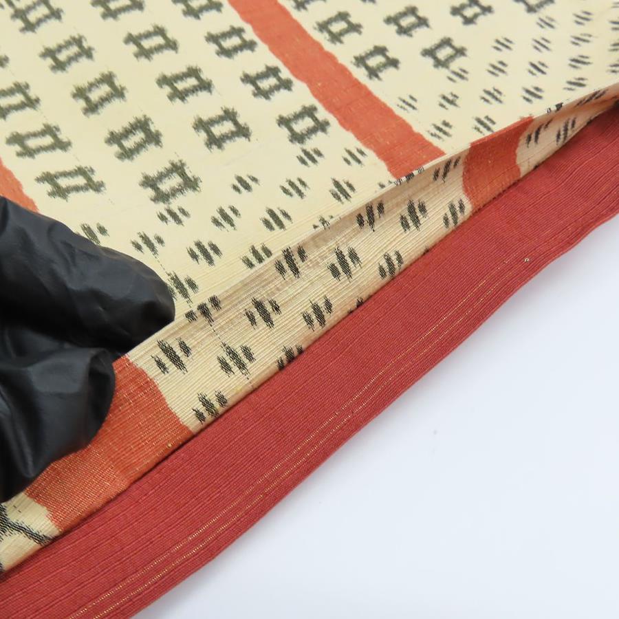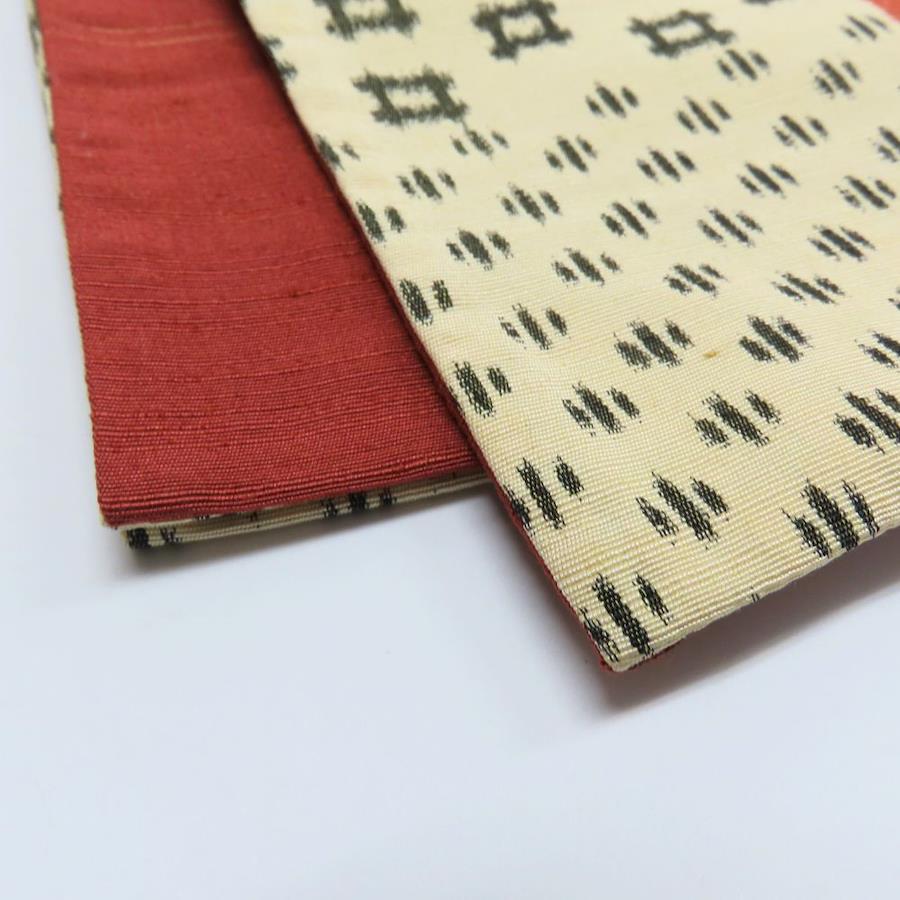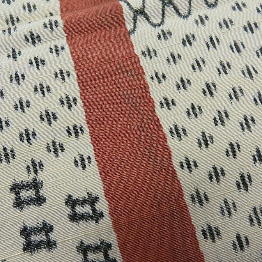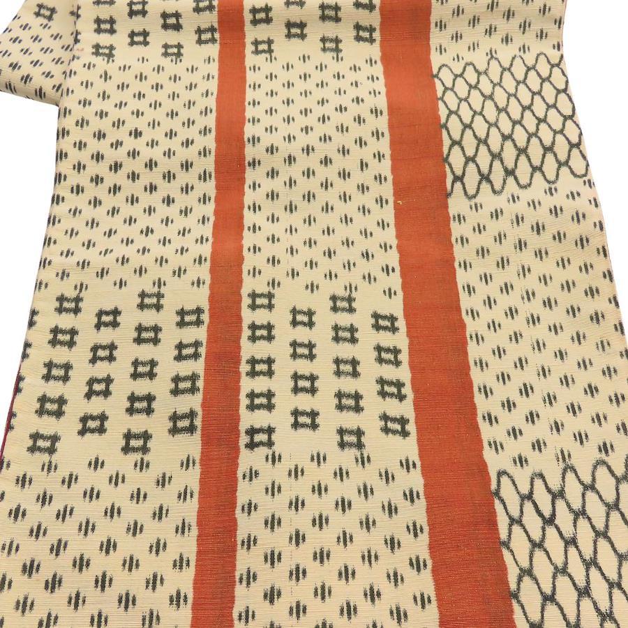 | 品名 | 【中古】 袋帯 かすり 正絹(金銀糸除く) ベージュ系 えんじ系 橙色 モダン 洒落帯 全通柄 レディース 女性 |