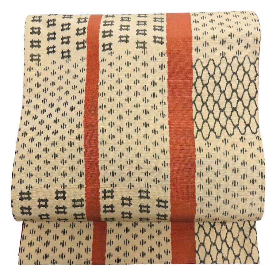 | サイズ | サイズ 全長:約 416cm 幅:約 30.5cm 帯の柄1:幾何学模様 |