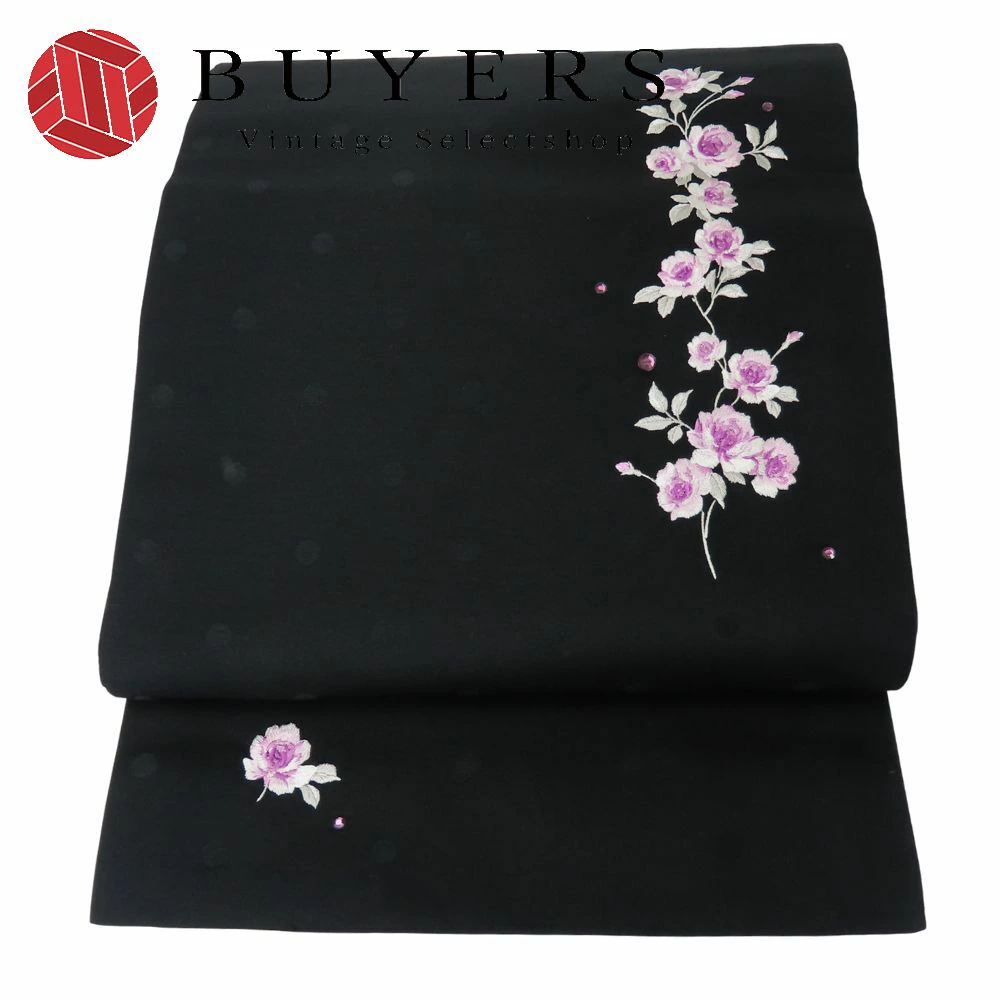 | 品名 | 【中古】 袋帯 京袋帯 ポリエステル ブラック 花柄 お洒落 レディース 女性 |