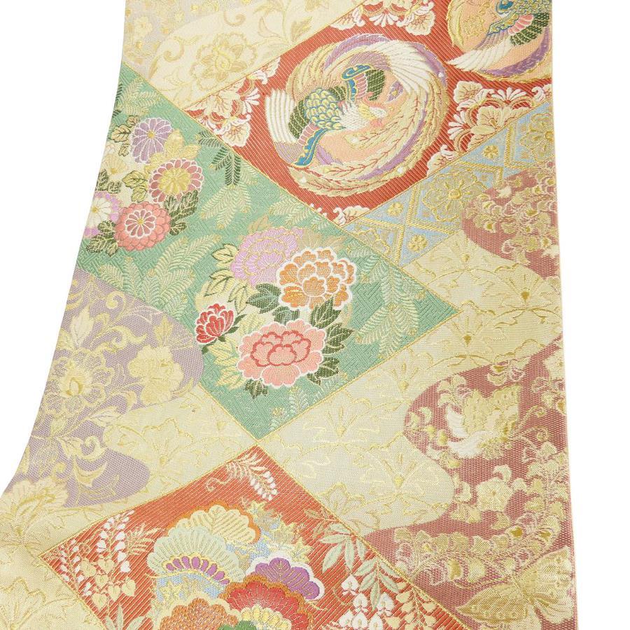| 品名 | 【中古】 袋帯 六通柄 吉祥文様 正絹(金銀糸除く) 金糸 ゴールド系 マルチカラー フォーマル 花唐草 日本伝統模様 レディース 女性 |