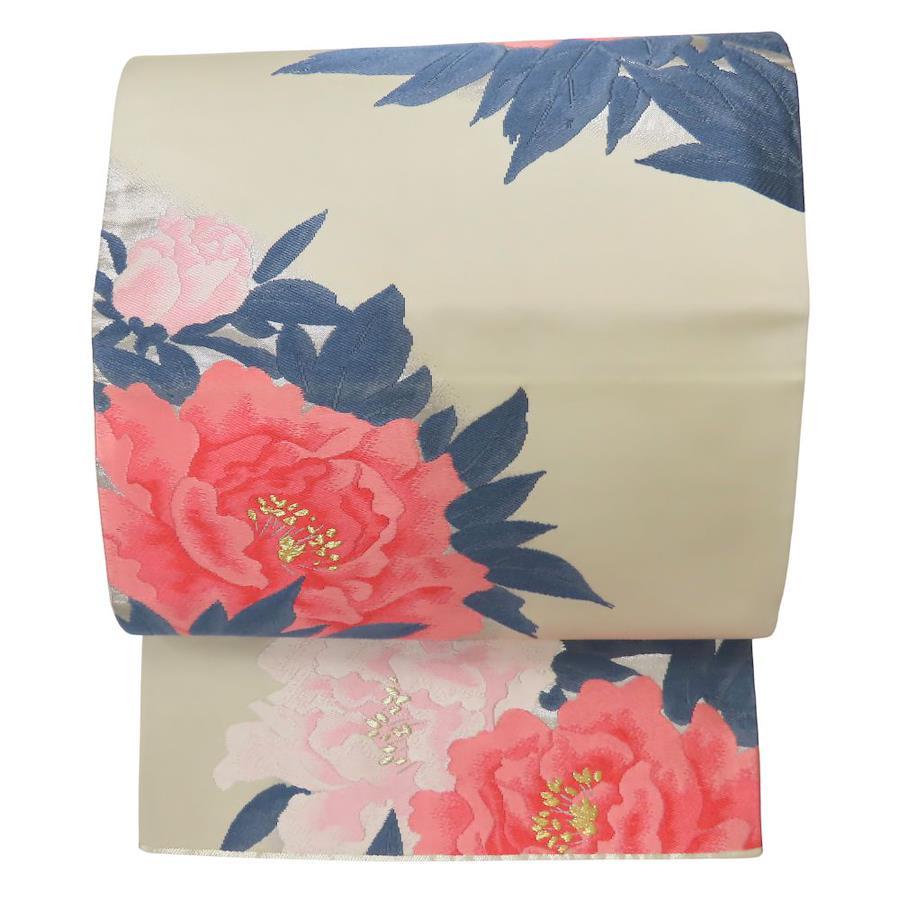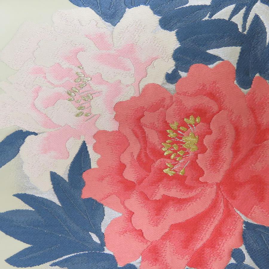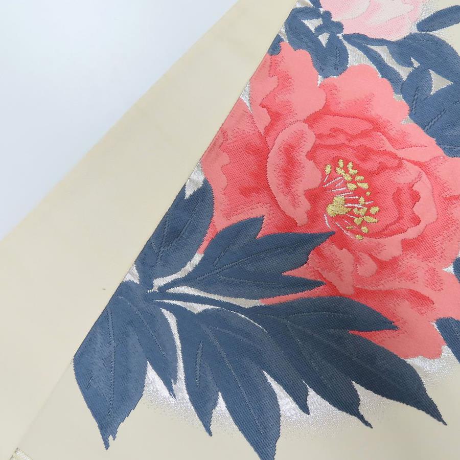 | 品名 | 【中古】 袋帯 正絹(金銀糸除く) クリーム ピンク 藍色 牡丹 着物 レディース 女性 |