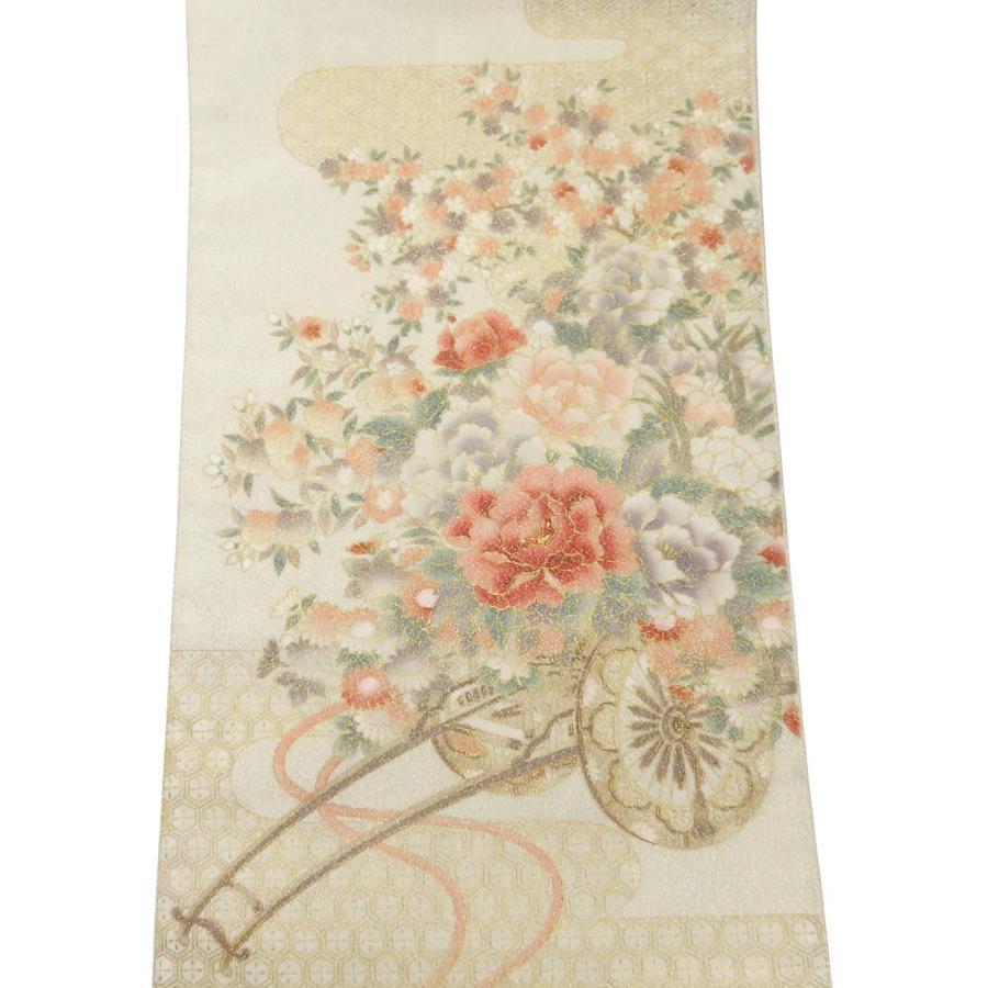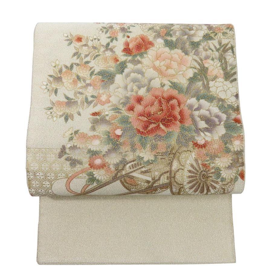 | 品名 | 【中古】 袋帯 正絹(金銀糸除く) シャンパンゴールド シルバー ゴールド マルチカラー お太鼓柄 花車文様 フォーマル レディース 女性 |