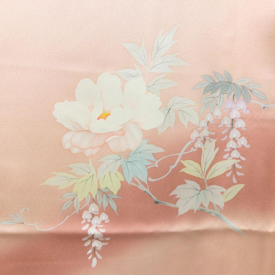 品名【中古】 訪問着・付下 正絹(金銀糸除く) サーモンピンク系 パステルカラー 上品 レディース 女性