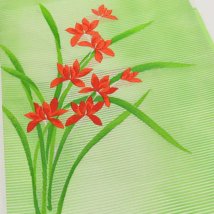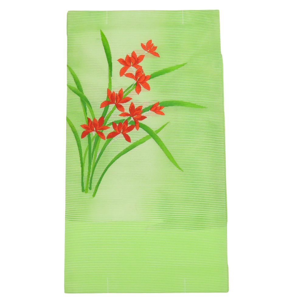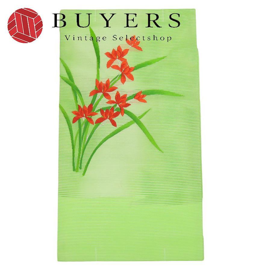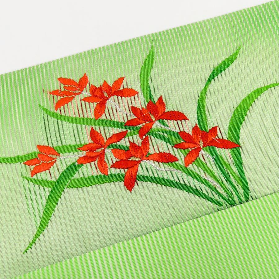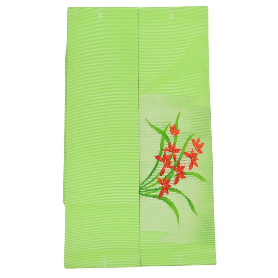 | 品名 | 【中古】 名古屋帯 名古屋仕立て 仕付け糸あり 正絹 ポリエステル グリーン系 夏物 花刺繍 縞 レディース 女性 |