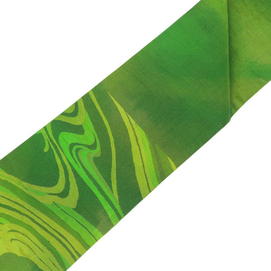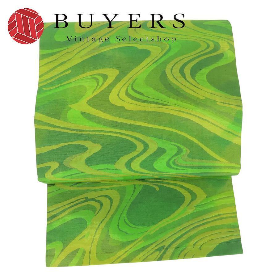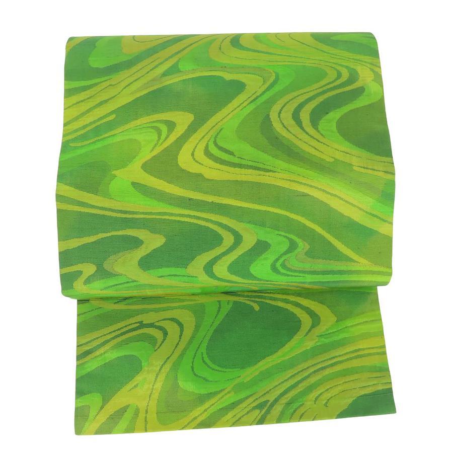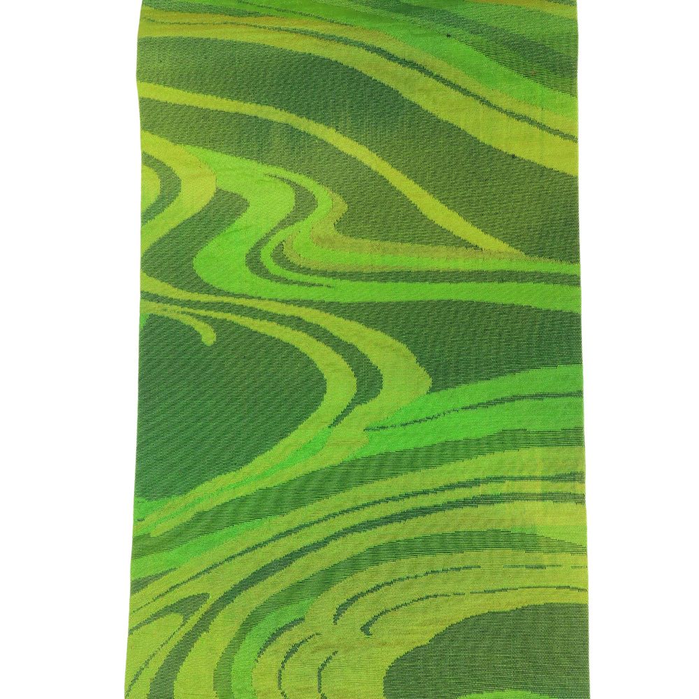 | 品名 | 【中古】 名古屋帯 九寸 正絹(金銀糸除く) グリーン系 名古屋仕立て 流水模様 洒落帯 レディース 女性 |