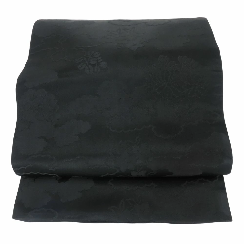 | 品名 | 【中古】 名古屋帯 九寸 正絹(金銀糸除く) ブラック 名古屋仕立て 全通柄 喪服用 レディース 女性 |