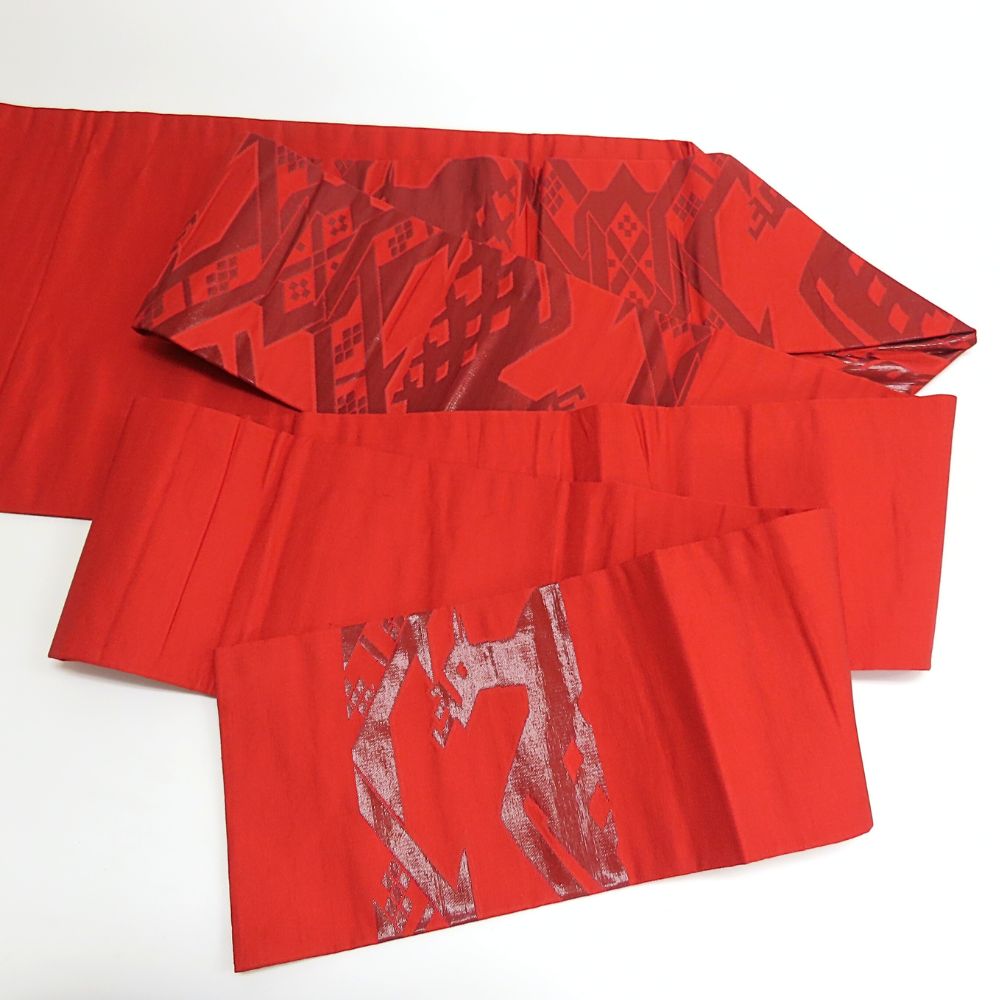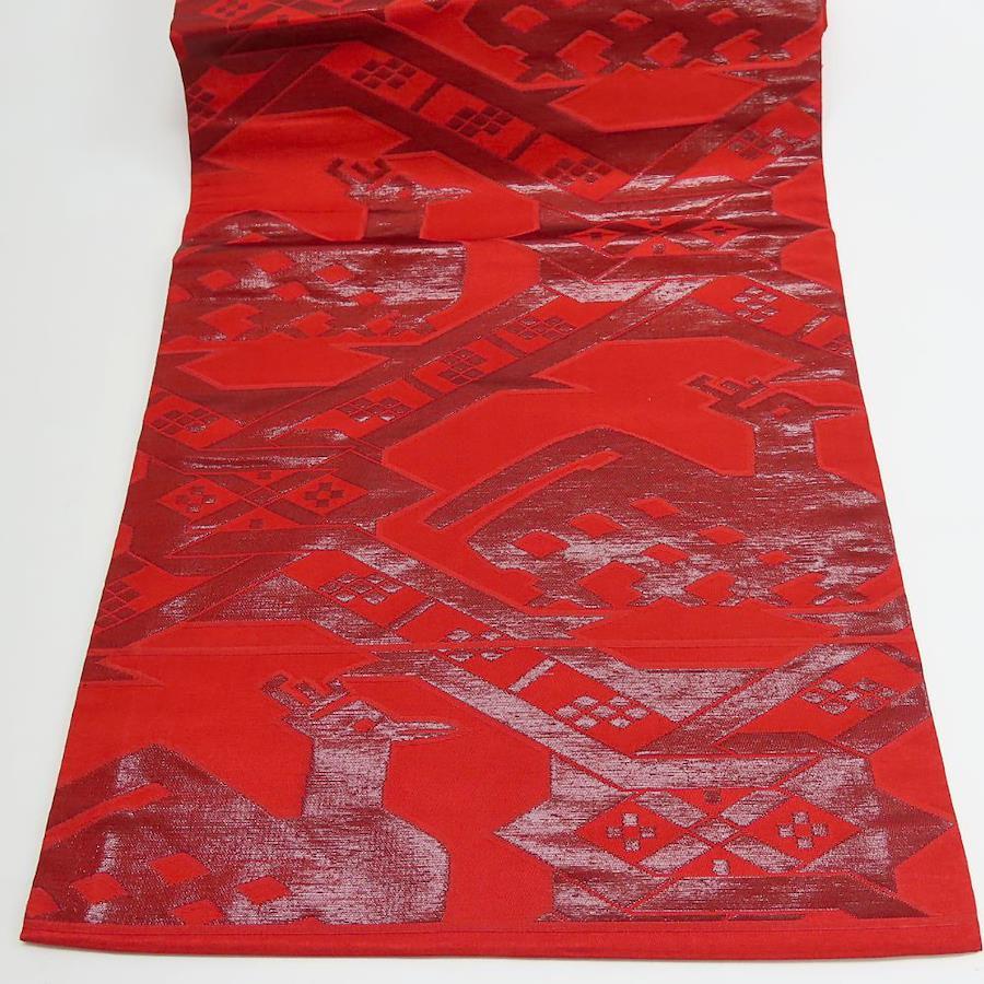 | 品名 | 【中古】 名古屋帯 九寸 正絹(金銀糸除く) レッド系 名古屋仕立て 有栖川文 お洒落 レディース 女性 |