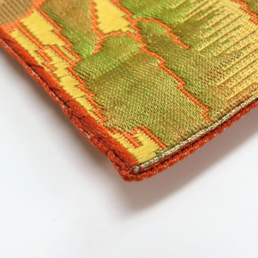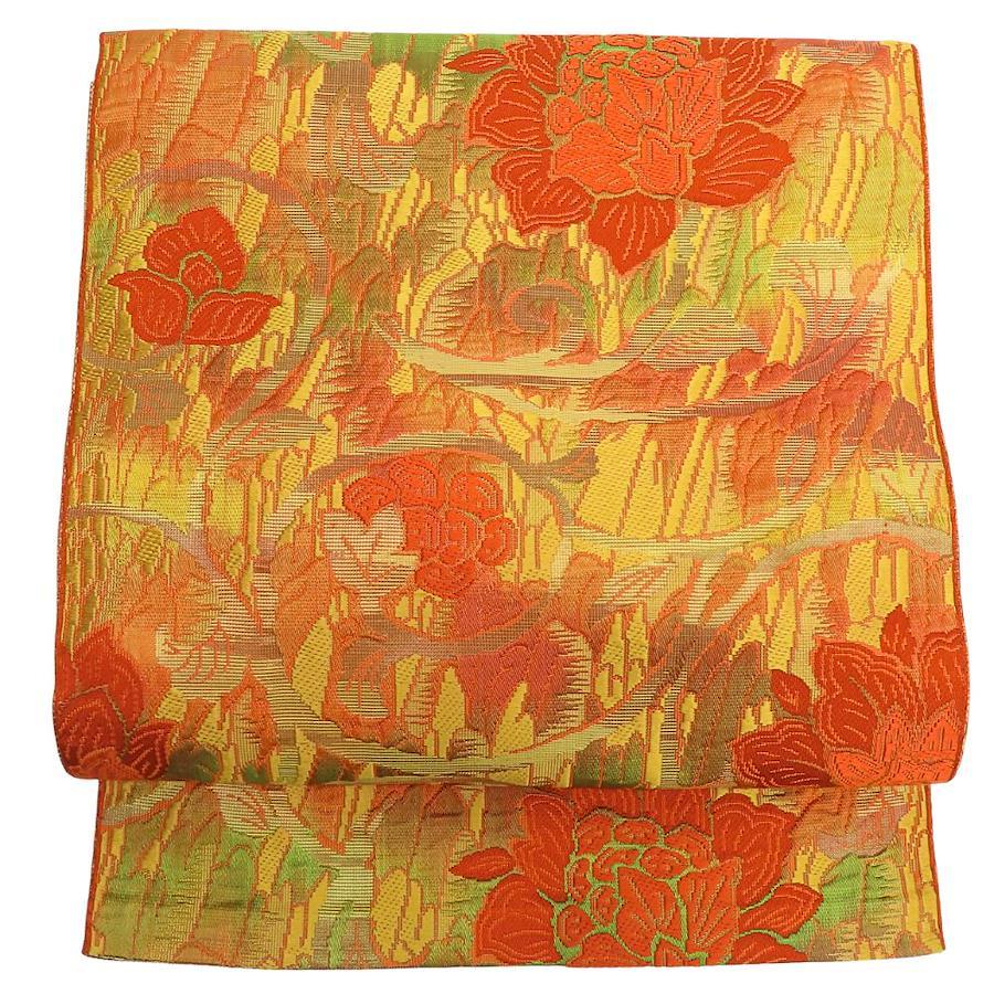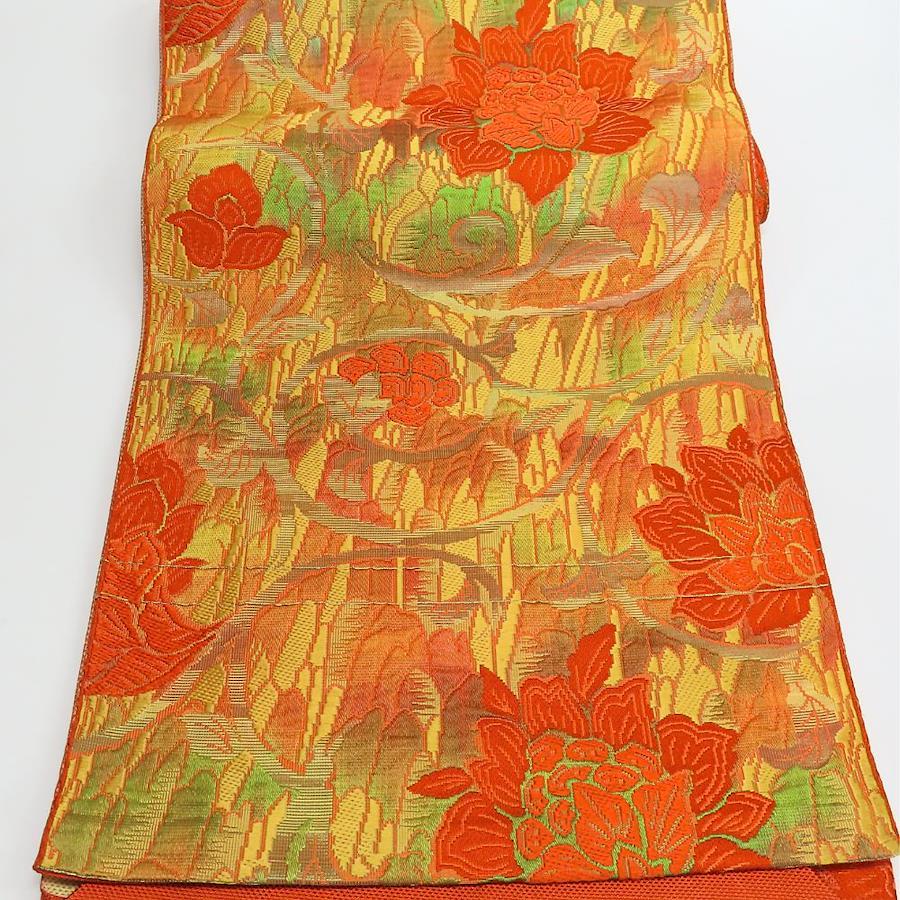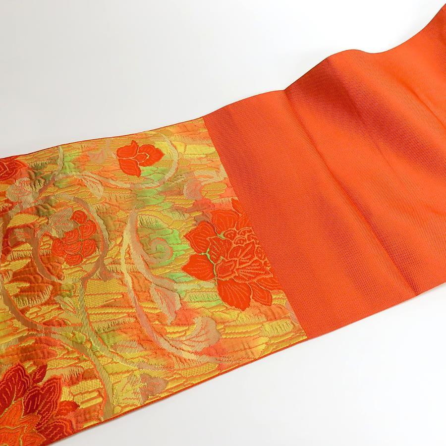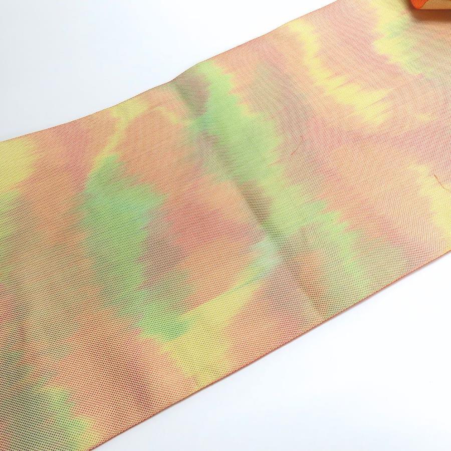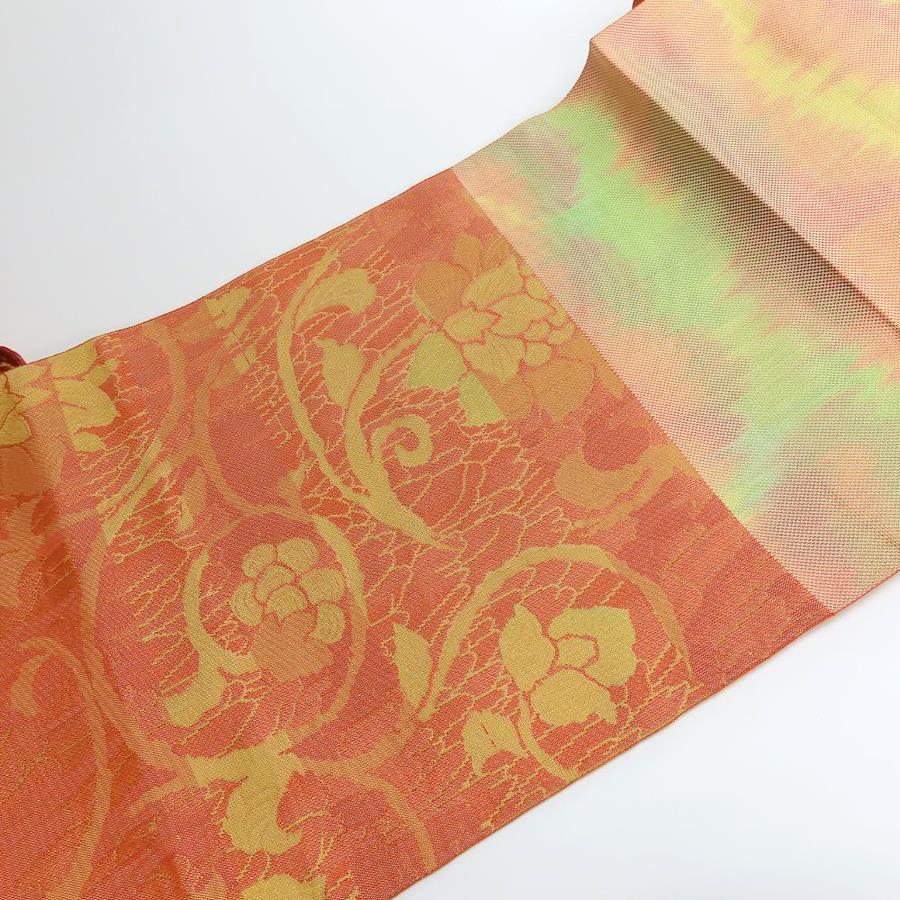 | 品名 | 【中古】 名古屋帯 八寸 正絹(金銀糸除く) オレンジ系 マルチカラー 松葉仕立て グラデーション レディース 女性 |