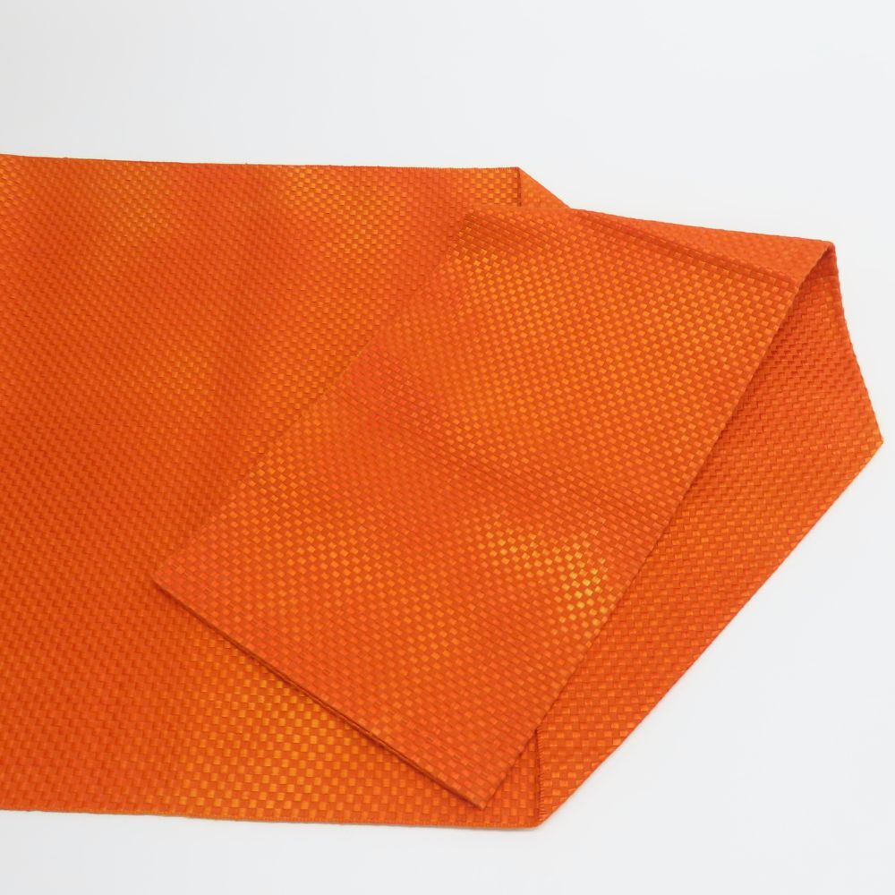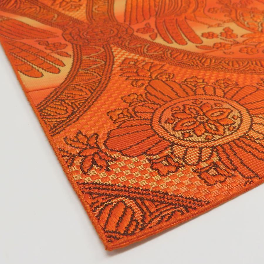 | 品名 | 【中古】 名古屋帯 八寸 正絹(金銀糸除く) オレンジ ブラウン 松葉仕立て 六通柄 二羽の鳥模様織り出し レディース 女性 |