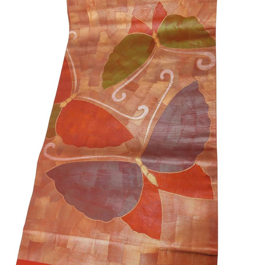 | 品名 | 【中古】 名古屋帯 名古屋仕立て 正絹(金銀糸除く) レッド ブラウン系 蝶 洒落帯 モダン レディース 女性 |