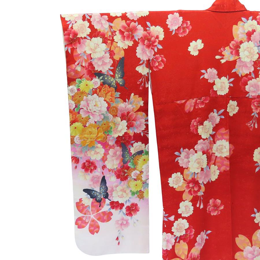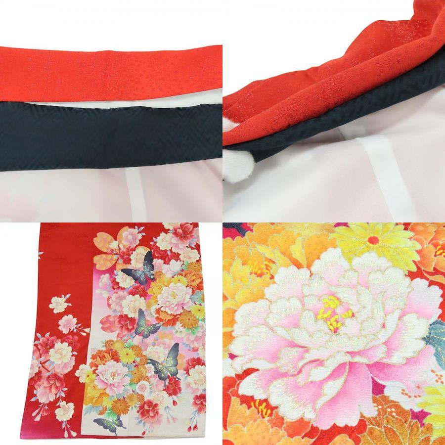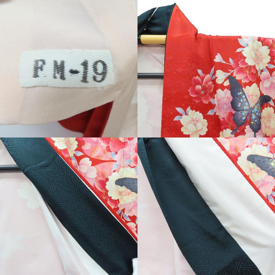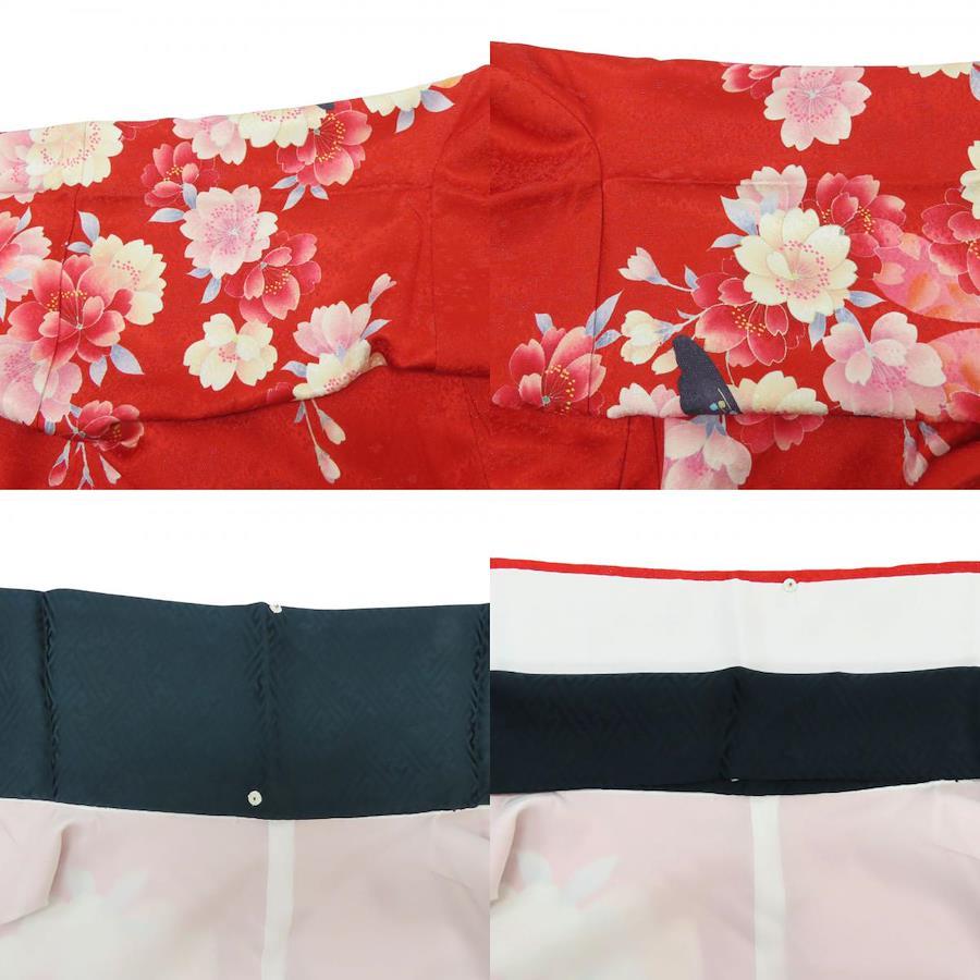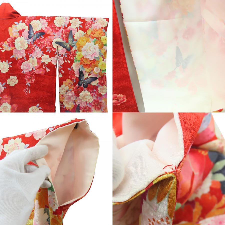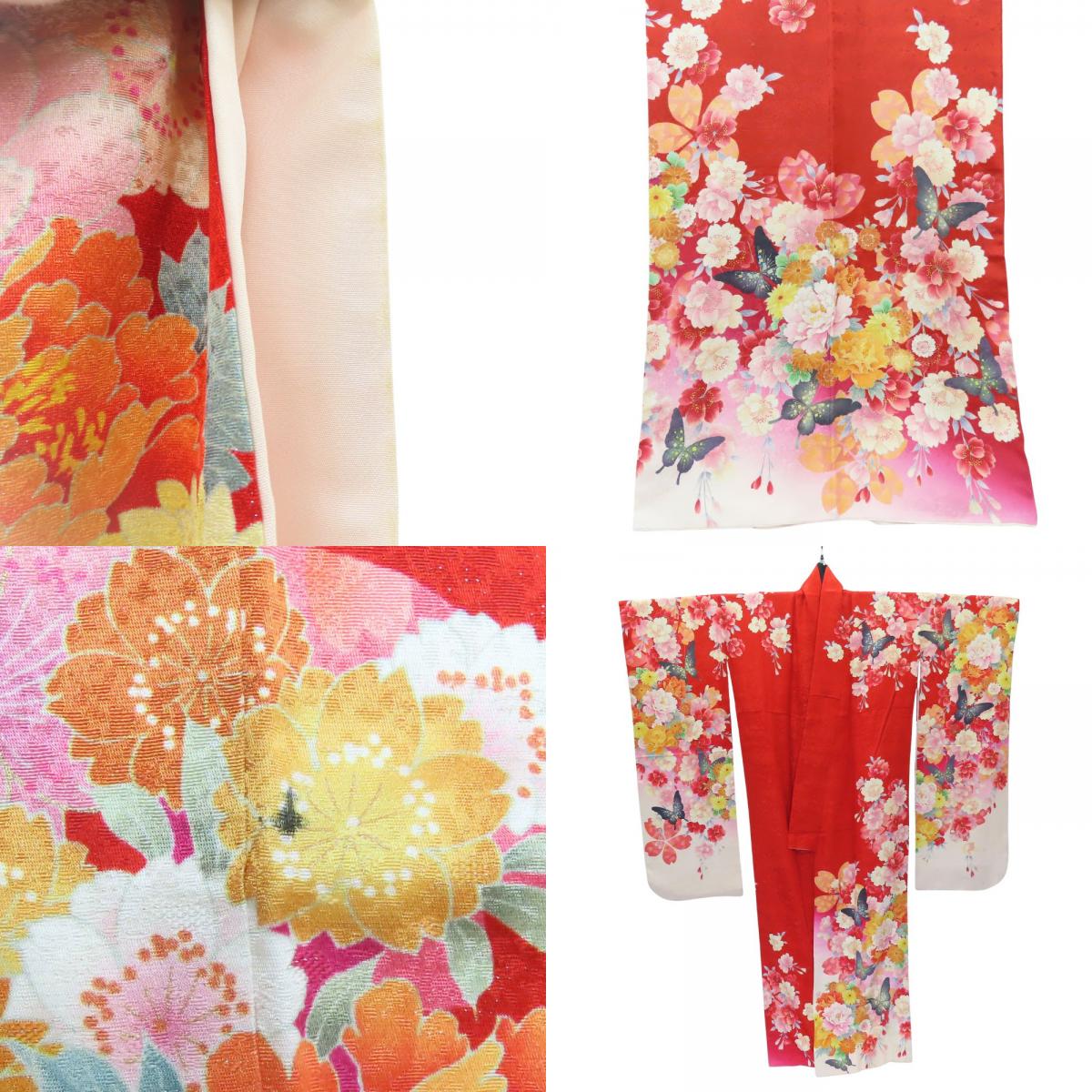 | 品名 | 【中古】 振袖 正絹(金銀糸除く) レッド ピンク ホワイト 成人式 花に蝶 重ね襟付き レディース 女性 |