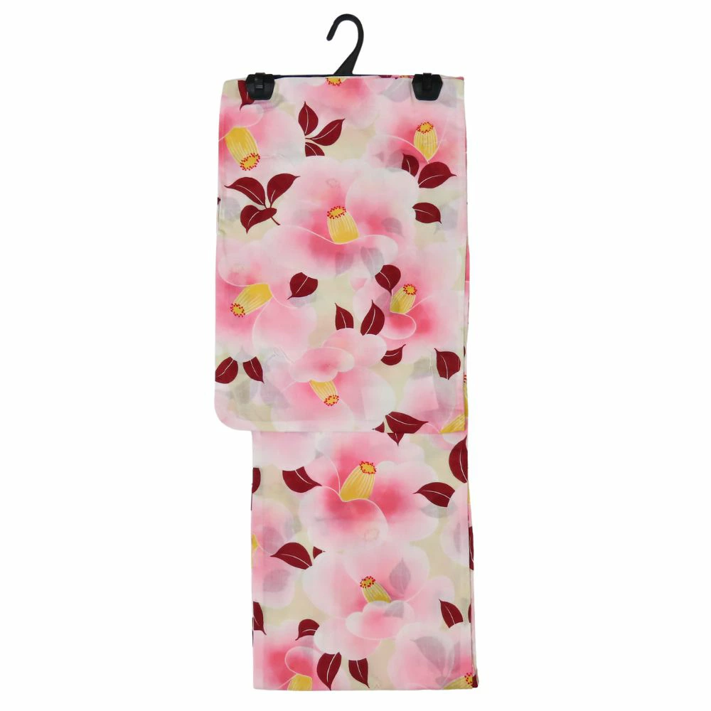 | 品名 | 【中古】 浴衣 未使用展示品 綿 ベージュ ピンク えんじ 椿 大柄 可愛い レディース 女性 |