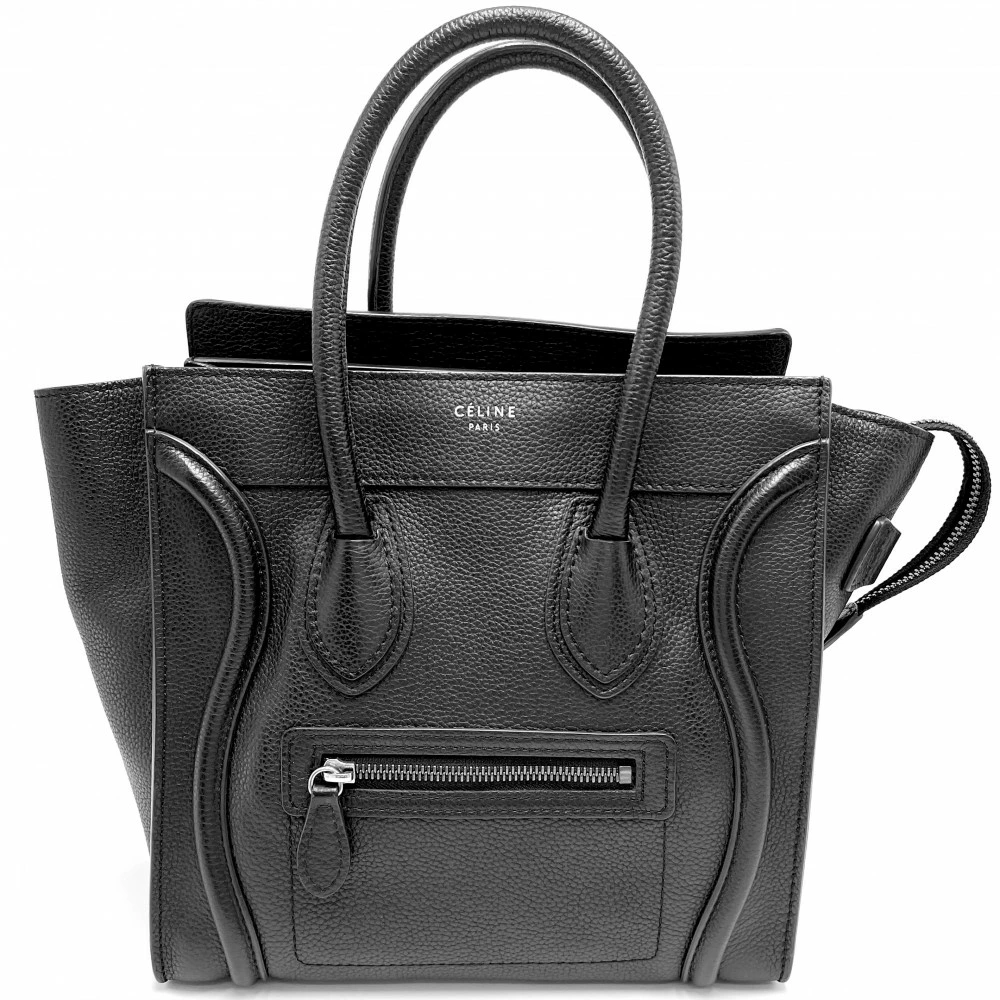 [32% OFF] Celine Women's Luggage Micro Shopper Leather Handbag CELINE 167793 in Black Calfskin with Silver Hardware [Pre-owned]