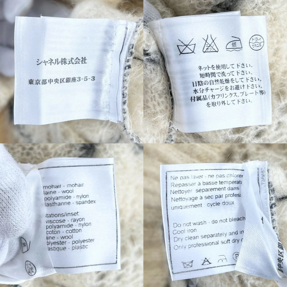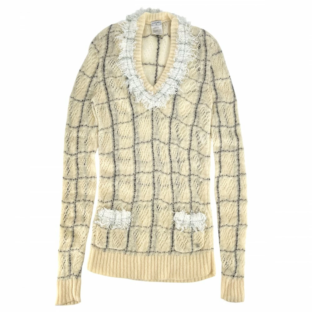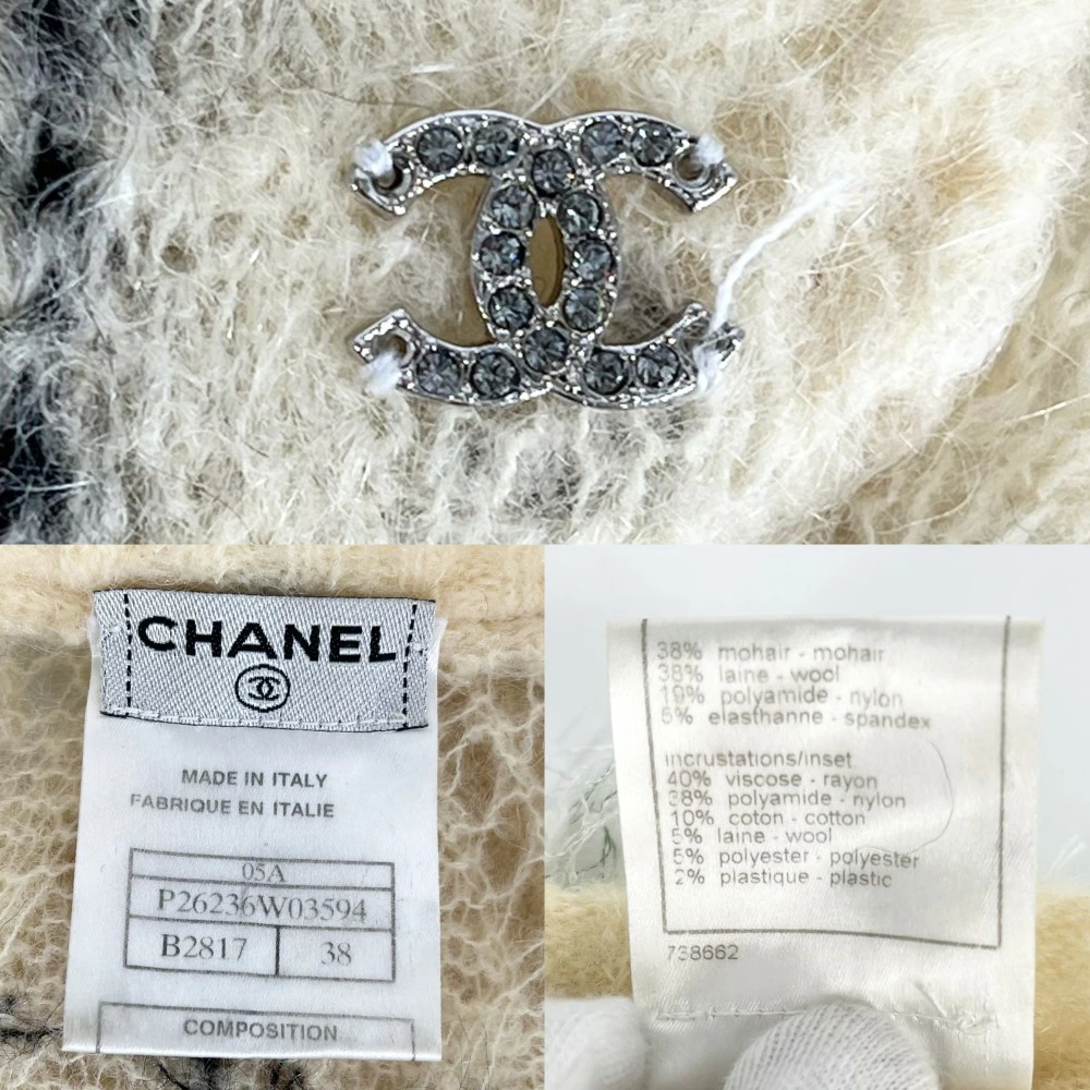 [35% OFF] Chanel Women's Knitwear Long Knit Top, Long Sleeves, Size 38, Beige/Green, Made with Mohair, Wool, Nylon, and Spandex, Fall/Winter [Pre-owned]