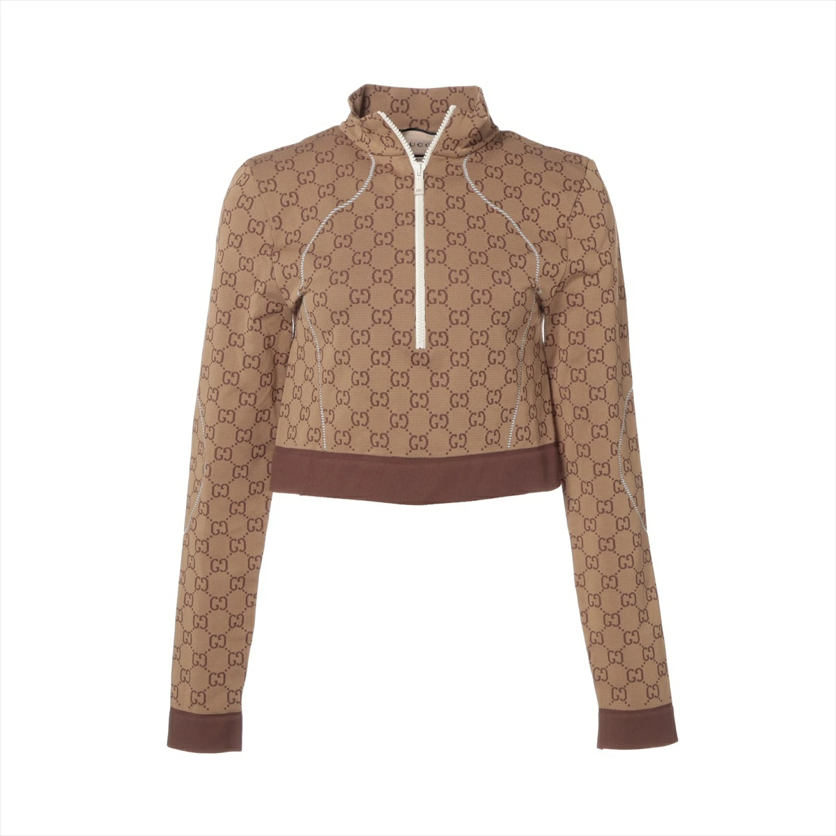 [Until 10/26 23:59] Gucci M GG Supreme Cropped Knit Polyamide Long Sleeve Shirt, Beige, WS16121 [Pre-owned]