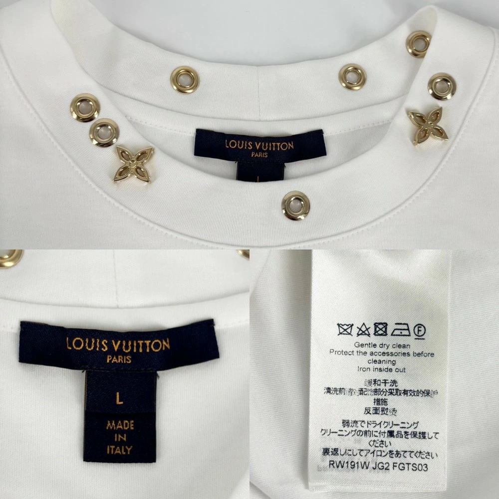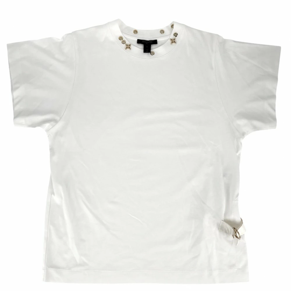 [40% OFF] Louis Vuitton Women's Short Sleeve T-Shirt with Side Straps, Size RM191W JG2 FGTS03, White, Gold Hardware, Cotton, Spring/Summer, Excellent Condition (Pre-owned)