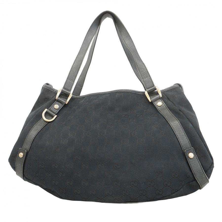 【5ia0866-h】グッチ トートバッグ GGキャンバス/アビー 130736 キャンバス ブラック シャンパンゴールド金具【中古】レディース