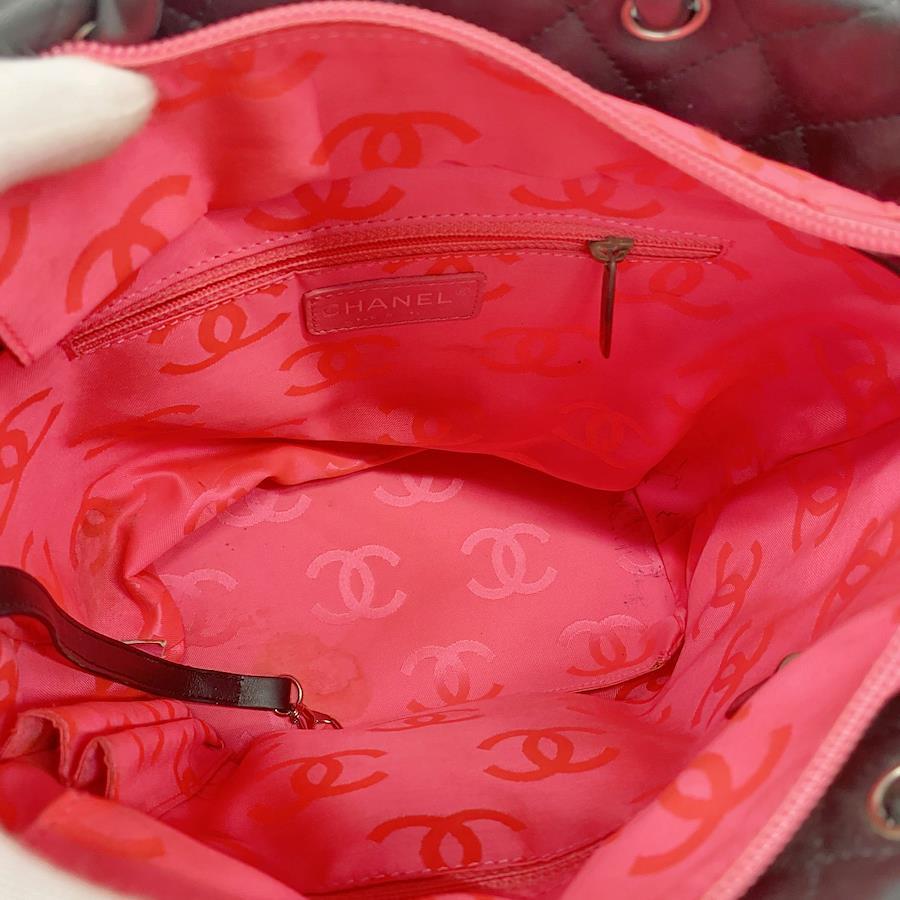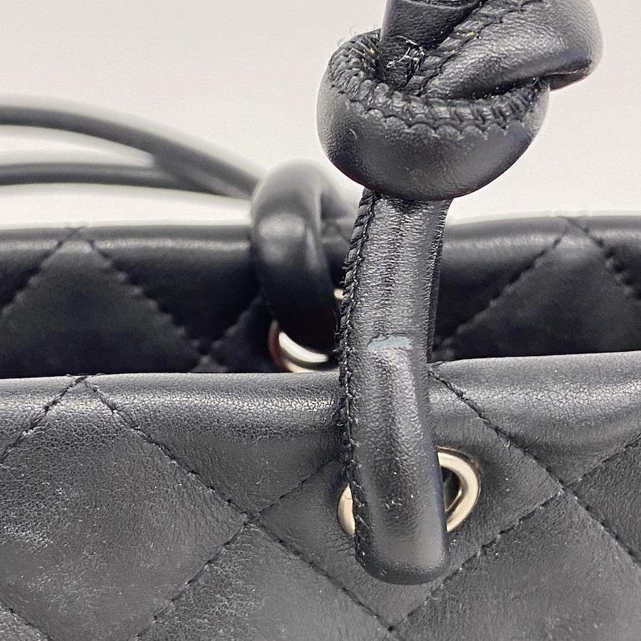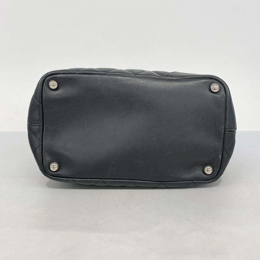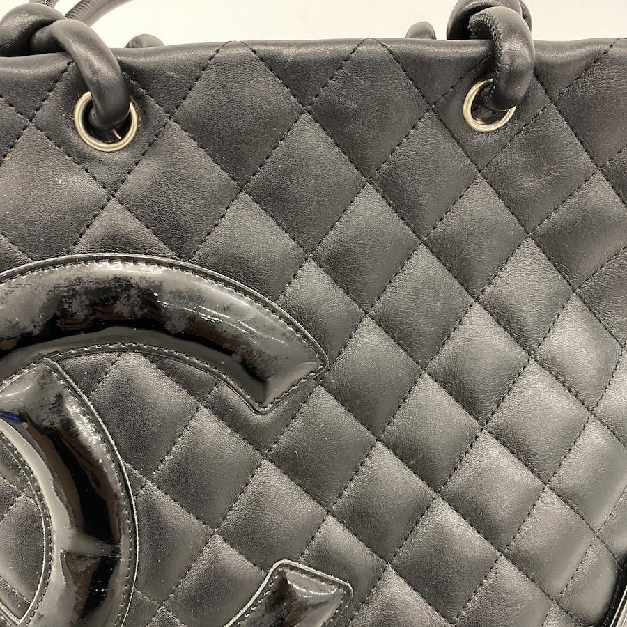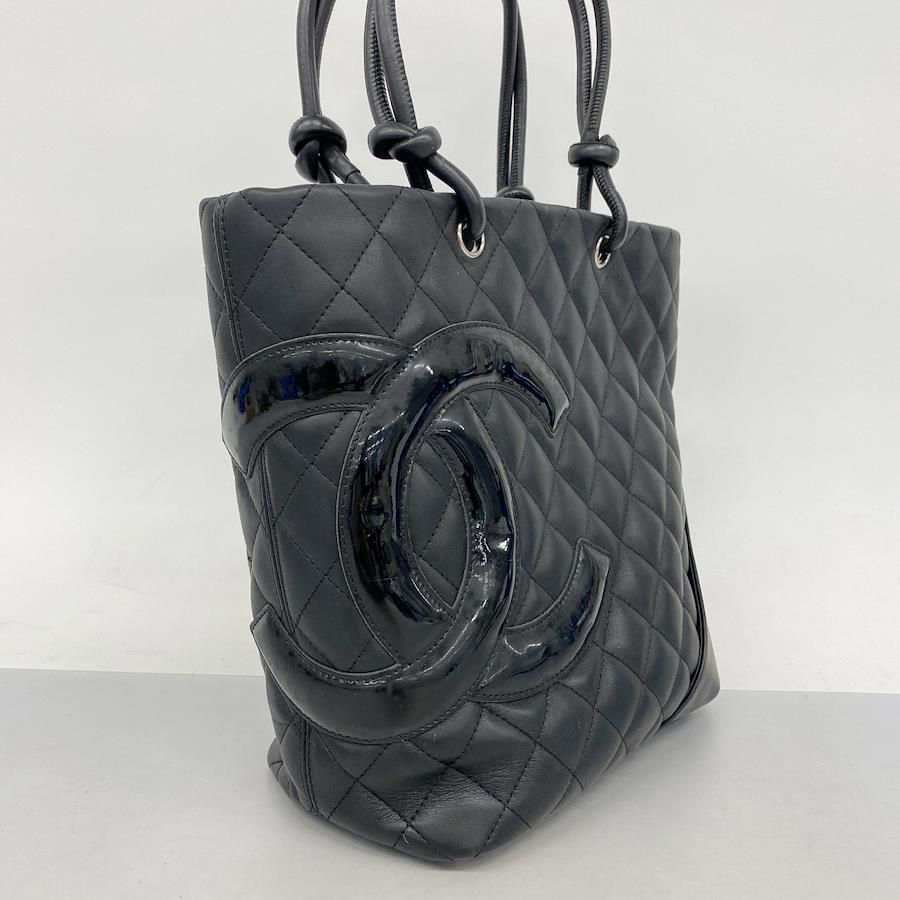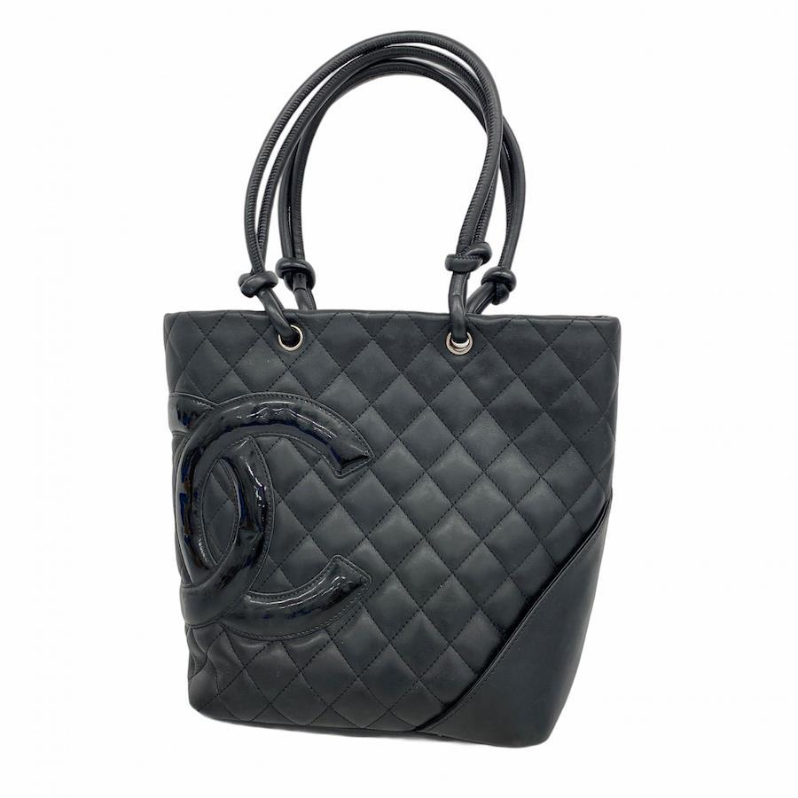 【5ia1144-h】シャネル トートバッグ カンボン ラムスキン パテントレザー ブラック シルバー金具【中古】レディース