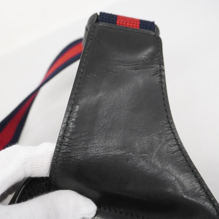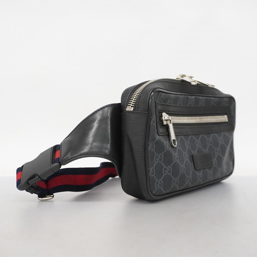 【5ib1307】グッチ ボディバッグ GGスプリーム/シェリーライン 474293 PVC ブラック グレー シルバー金具【中古】メンズ