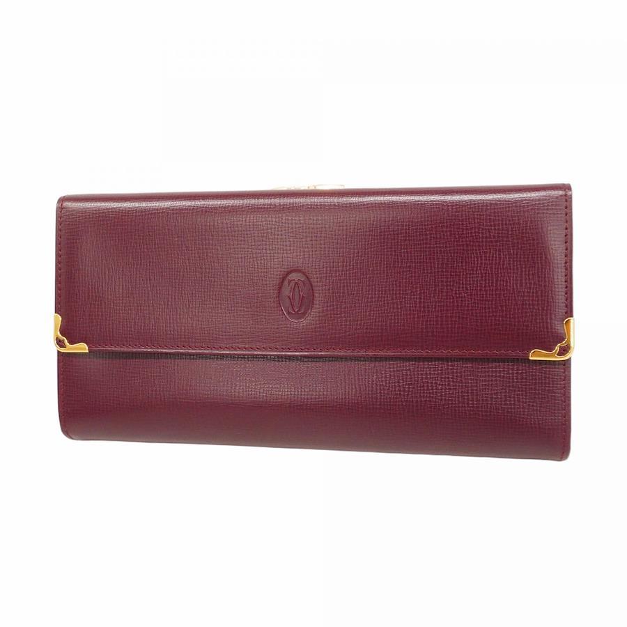 【5ib1404-h】カルティエ 長財布 マスト レザー ボルドー ゴールド金具【中古】レディース