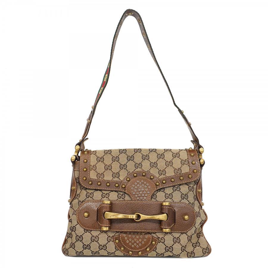 【5ib1583-h】グッチ ショルダーバッグ GGキャンバス/シェリーライン 144010 キャンバス ブラウン ゴールド金具【中古】レディース