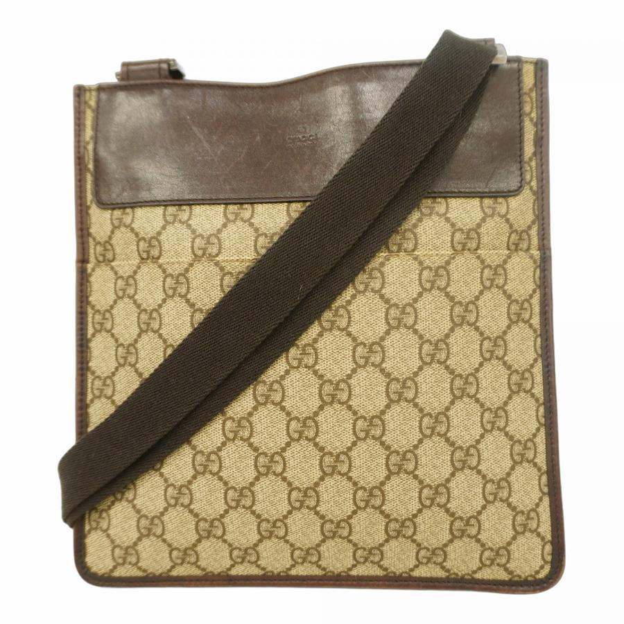 【5ib1877】グッチ ショルダーバッグ GGスプリーム 27639 PVC ベージュ ブラウン シルバー金具【中古】レディース