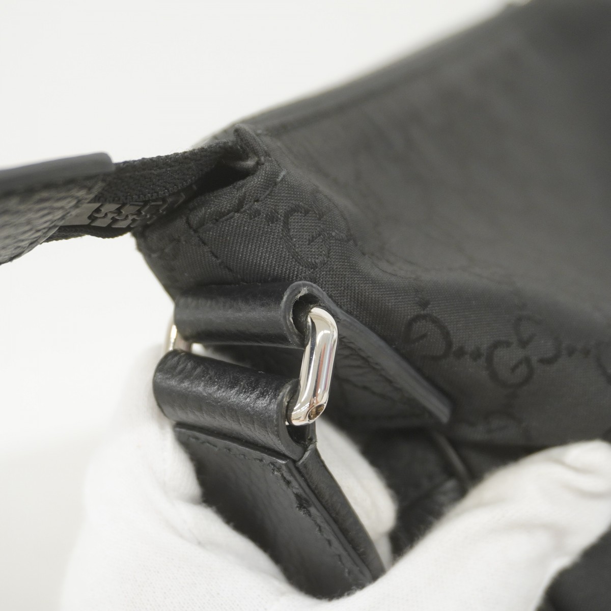 【5ib2224-h】グッチ ショルダーバッグ GGナイロン 449184 ナイロン ブラック シルバー金具【中古】メンズ