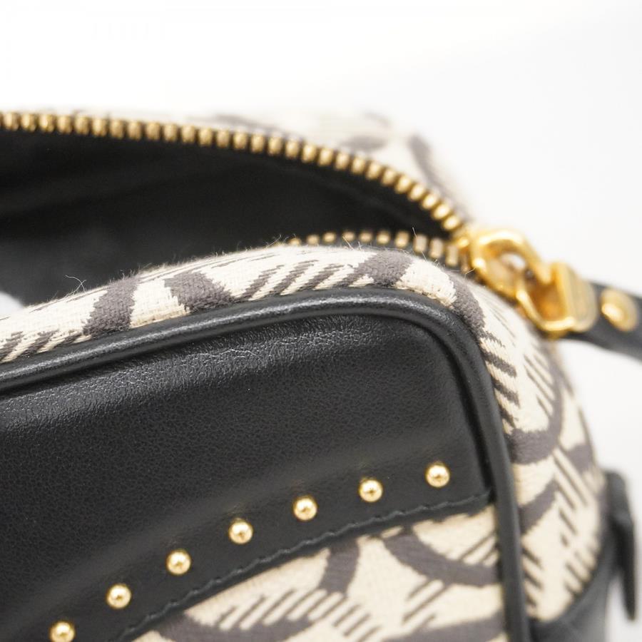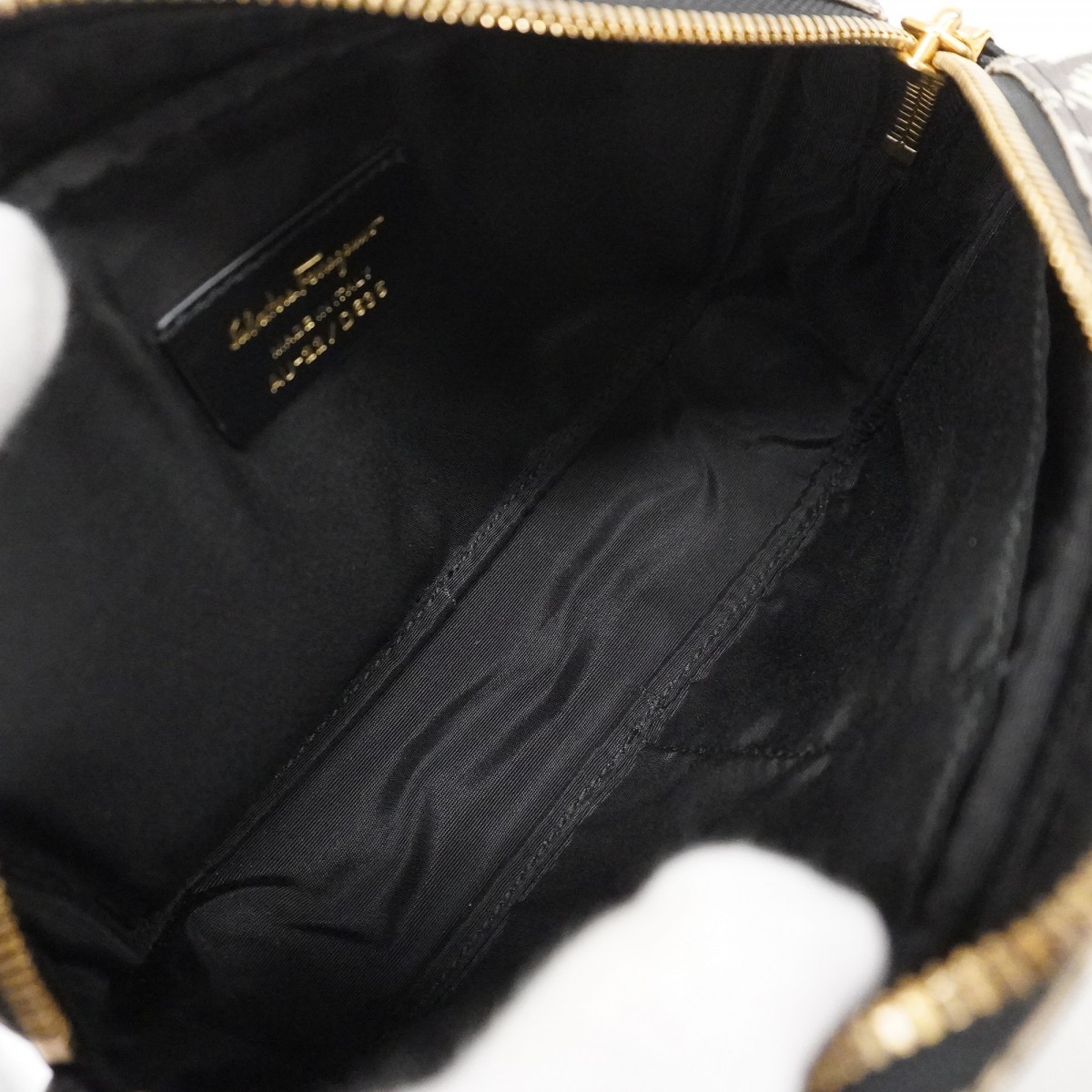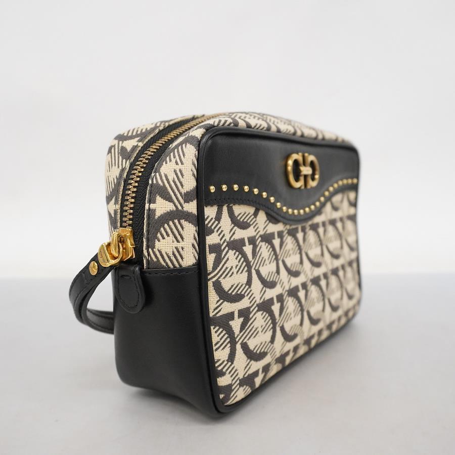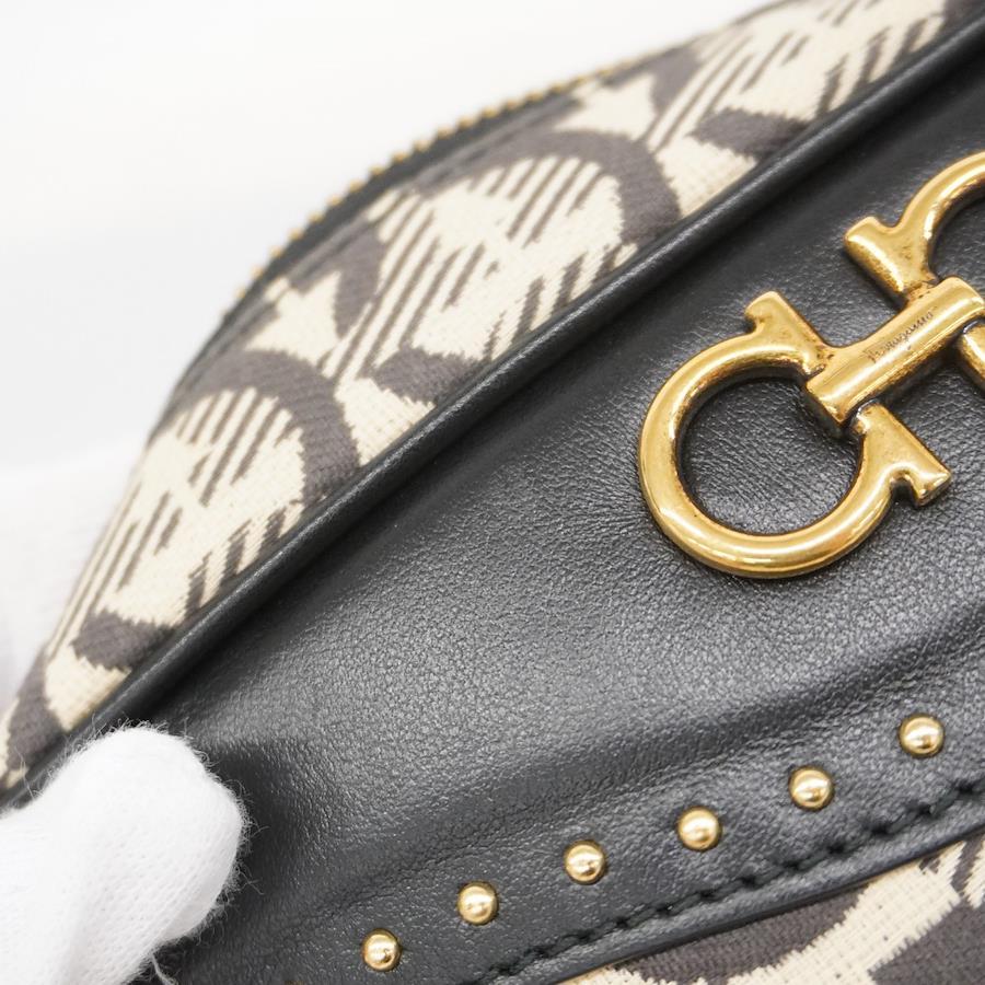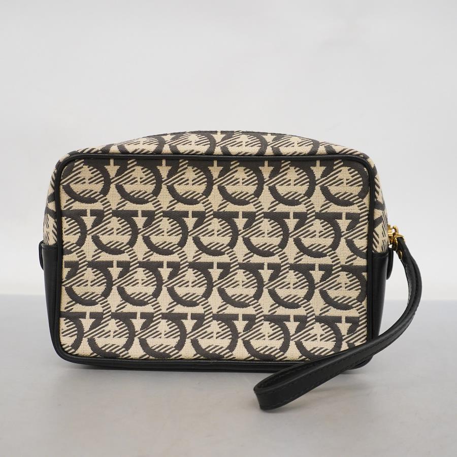 【5ib2561-h】サルヴァトーレフェラガモ ポーチ ガンチーニ キャンバス ベージュ ブラック ゴールド金具【中古】レディース
