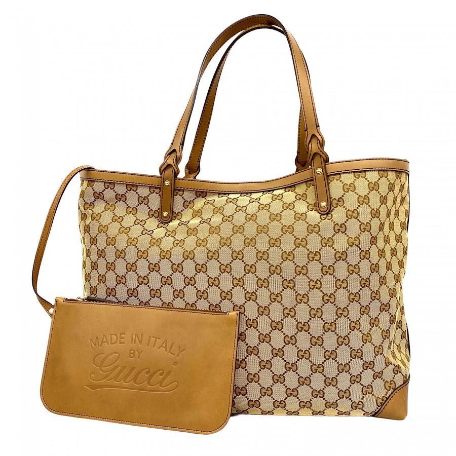 [5ic2692-h] Gucci Tote Bag GG Canvas 247207 Brown Canvas with Champagne Gold Hardware [Pre-owned] Women's