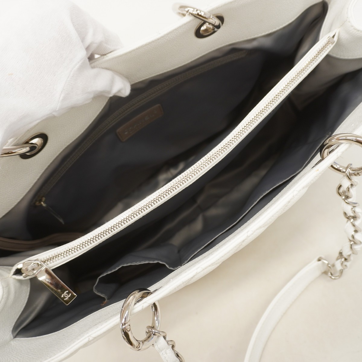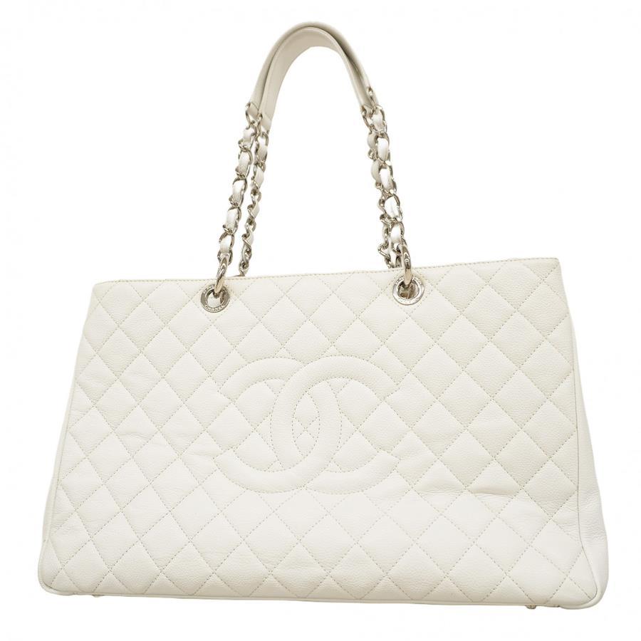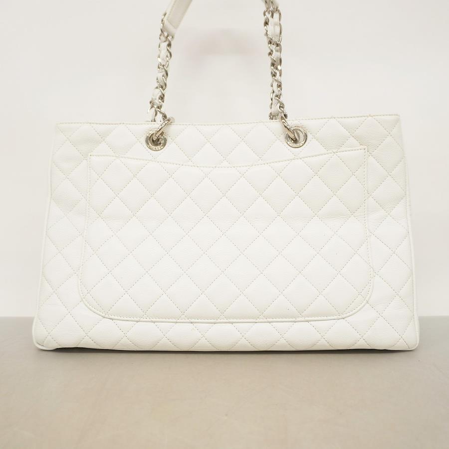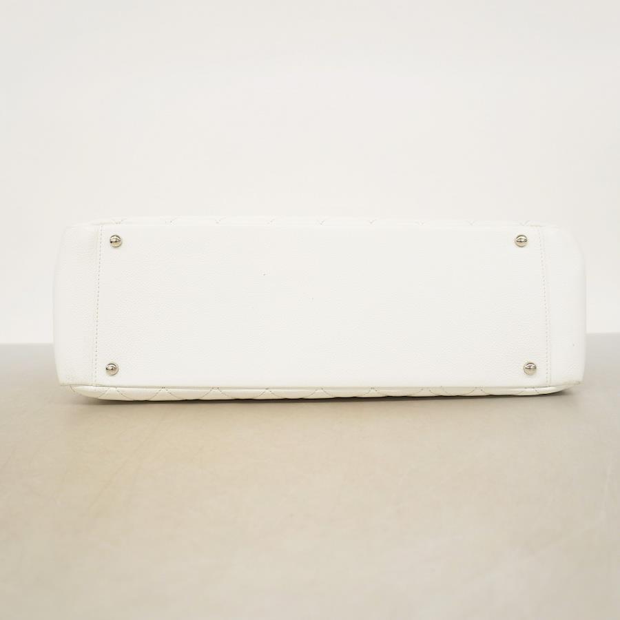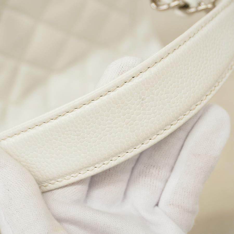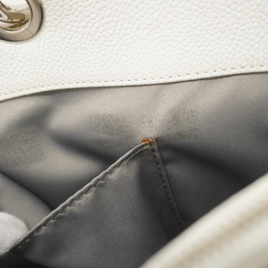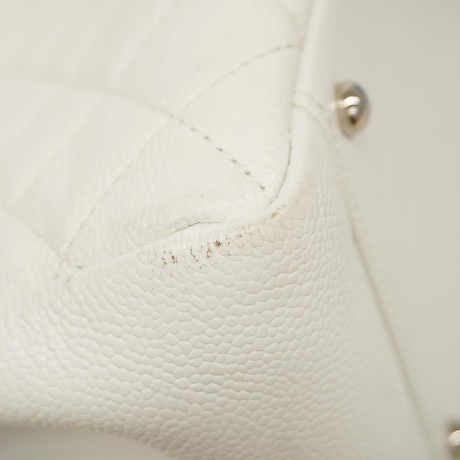 【5ic2713-h】シャネル トートバッグ マトラッセ キャビアスキン ホワイト シルバー金具【中古】レディース