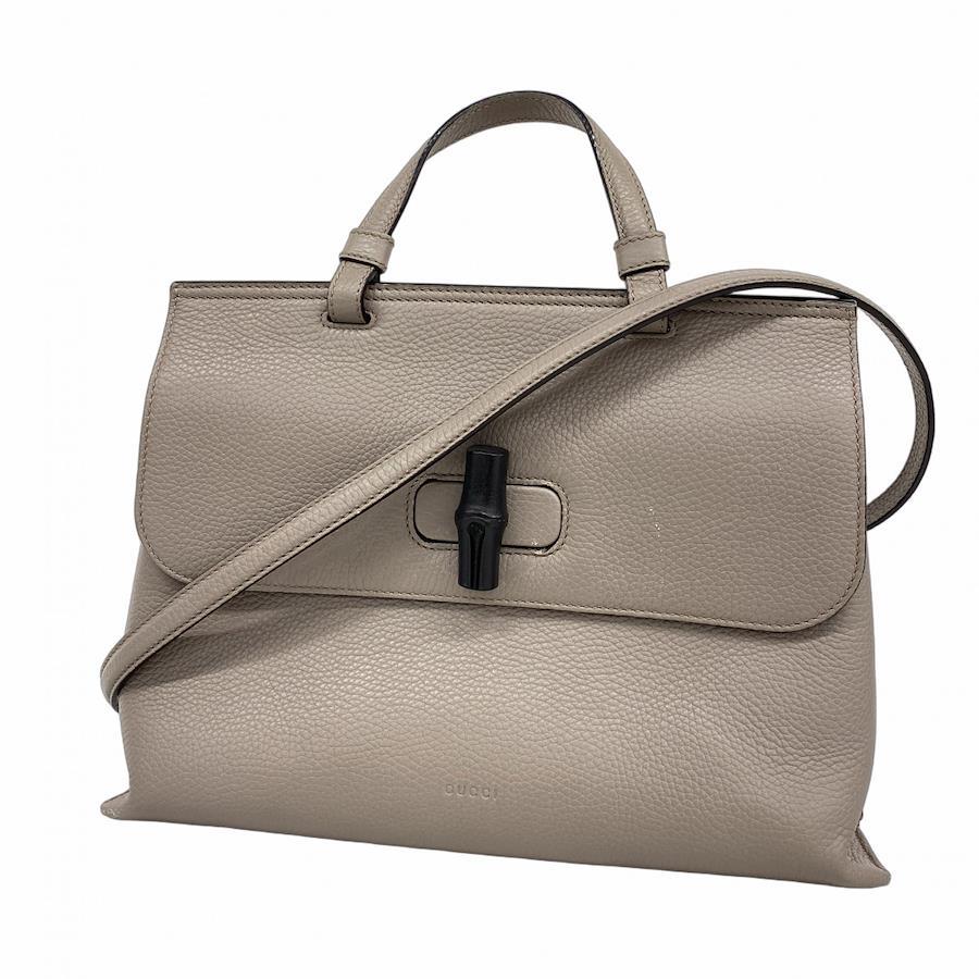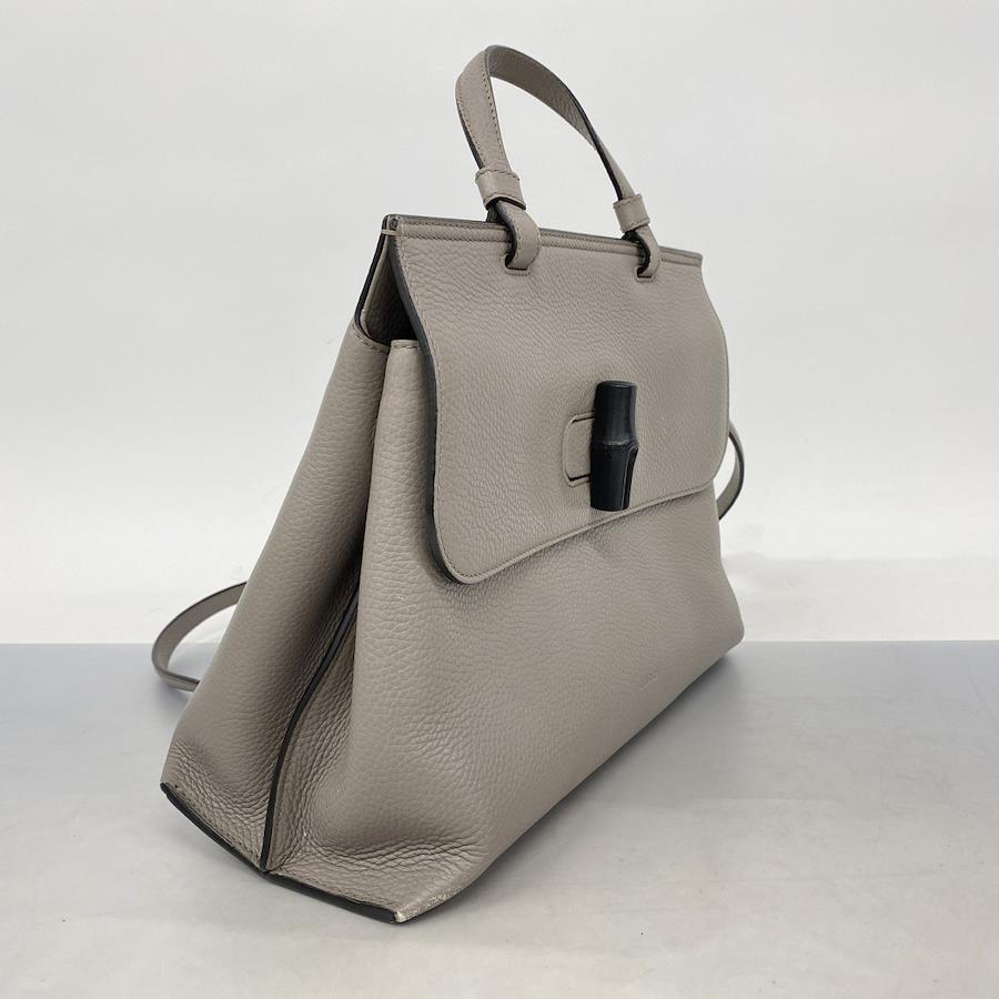 【5ic2914】グッチ ハンドバッグ バンブー 392013 レザー ライトグレー シルバー金具【中古】レディース