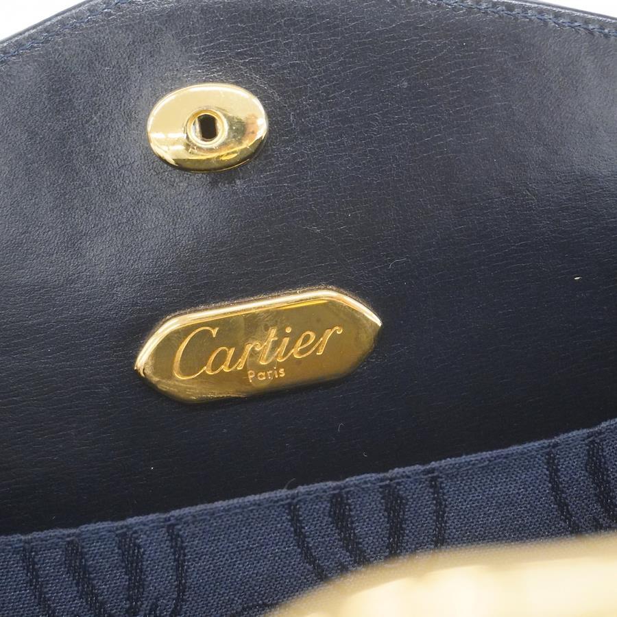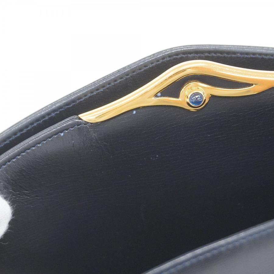 【5ic3006】カルティエ ショルダーバッグ サファイア レザー ネイビー ゴールド金具【中古】レディース