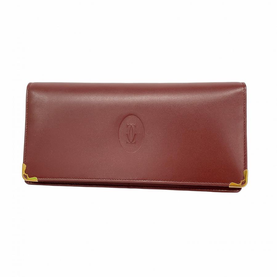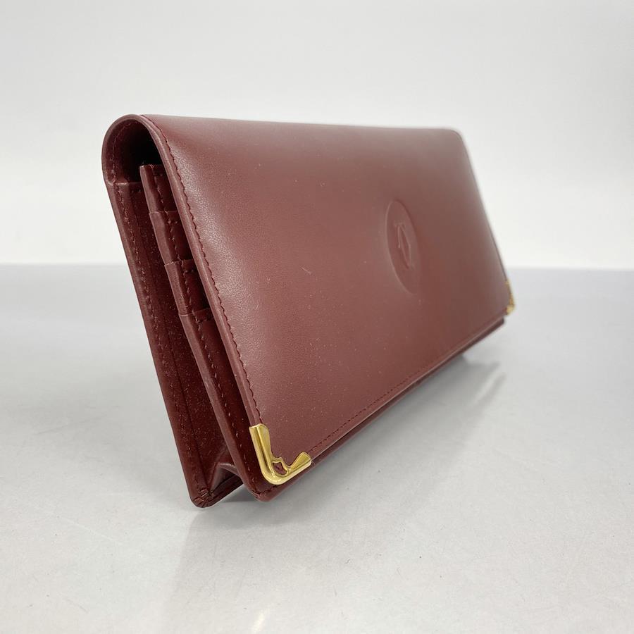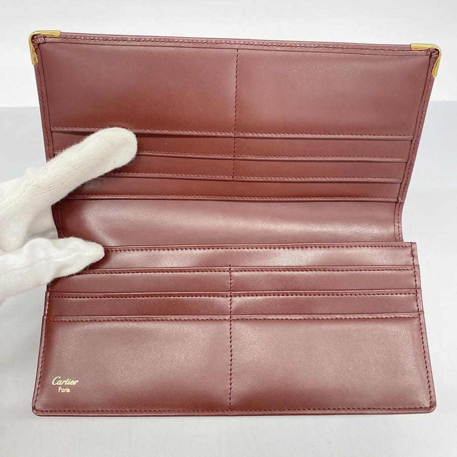 【5ic3123-h】カルティエ 長財布 マスト レザー ボルドー ゴールド金具【中古】レディース