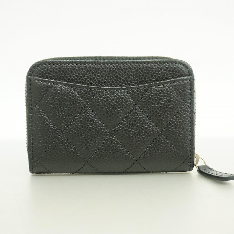 【5ic3315-h】シャネル コインケース マトラッセ キャビアスキン ブラック シルバー金具【中古】レディース