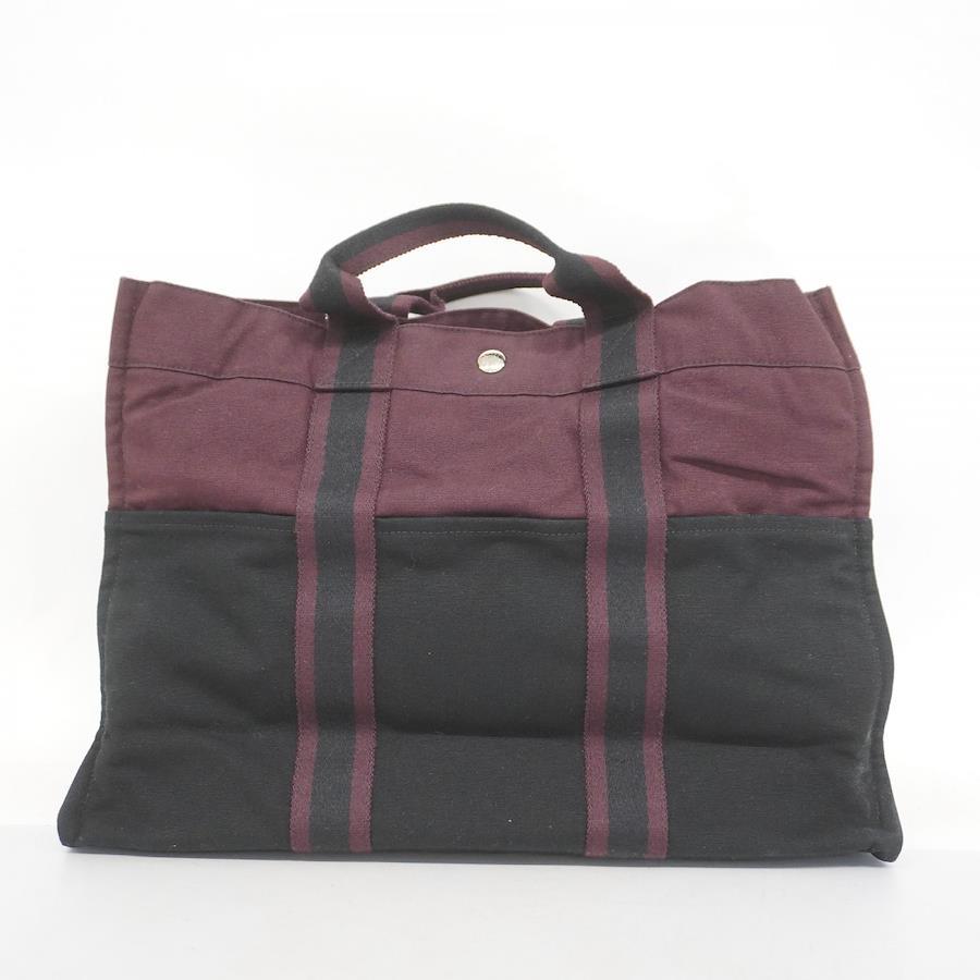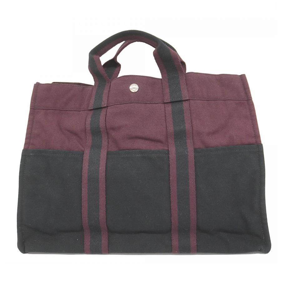 ★SALE【5ic3669】エルメス トートバッグ フールトゥMM キャンバス ブラック ボルドー シルバー金具【中古】メンズ レディース ユニセックス
