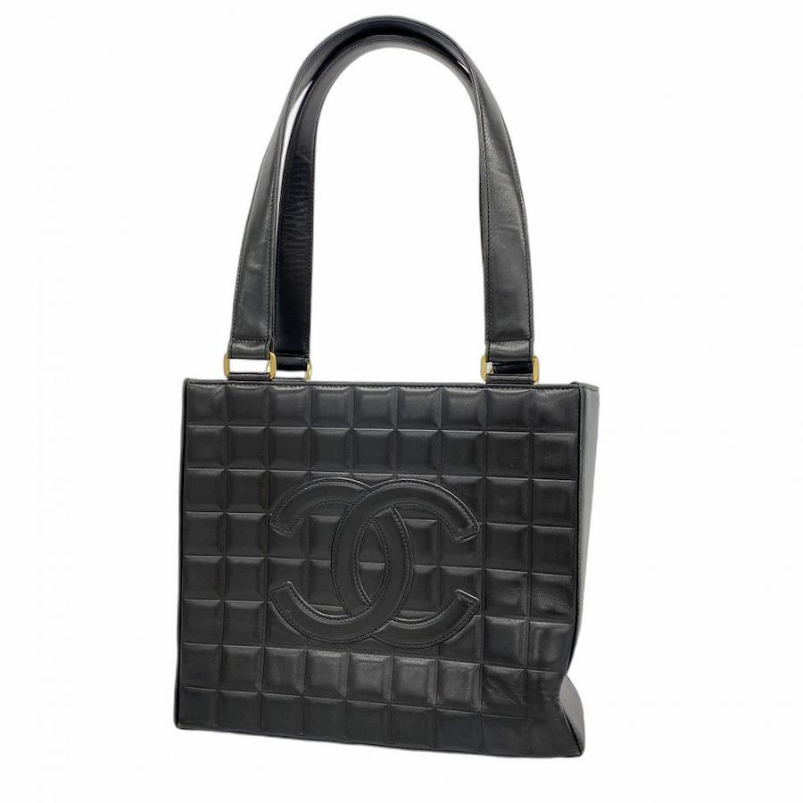 【5ic3860-h】シャネル トートバッグ チョコバー ラムスキン ブラック ゴールド金具【中古】レディース